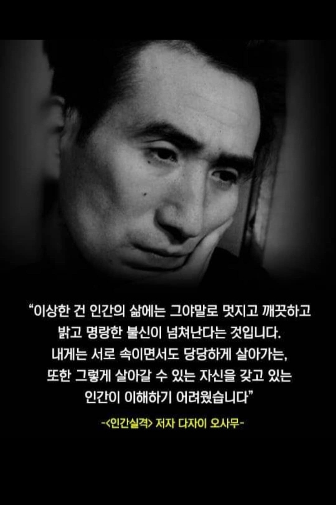 일본작가 다자이 오사무의 '인간실격'을 처음 접했을 때의 충격이란. 얼마 되지 않는 페이지를, 그 어떤 책 보다, 한 장 한 장 아끼며 읽었던 기억이 난다.