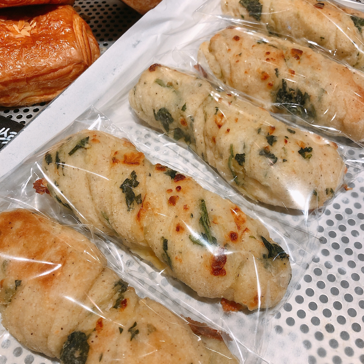 팔미까레와 함께 르 알래스카에서 많이 먹은 빵은 감자 시금치 빵이다. 감자가 들어갔다는 것부터 맛있을 상인데, 그뤼에르 치즈까지 들어가서 짭짤함과 담백함과 구수함 사이의 풍미가 폭발하는 빵이다. 다른 빵집에도 비슷한 조합의 빵이 많은데, 효창동 우스블랑의 감자빵은 감자와 치즈 맛이 좀 더 확실하게 나는 편이고, 연남동 블랑의 시금치 치아바타는 안에 베이컨과 크림치즈가 들어 맛이 더 풍부하다. 세 군데 다 다르지만, 다 쟁여놓고 먹을 만큼 맛있다.