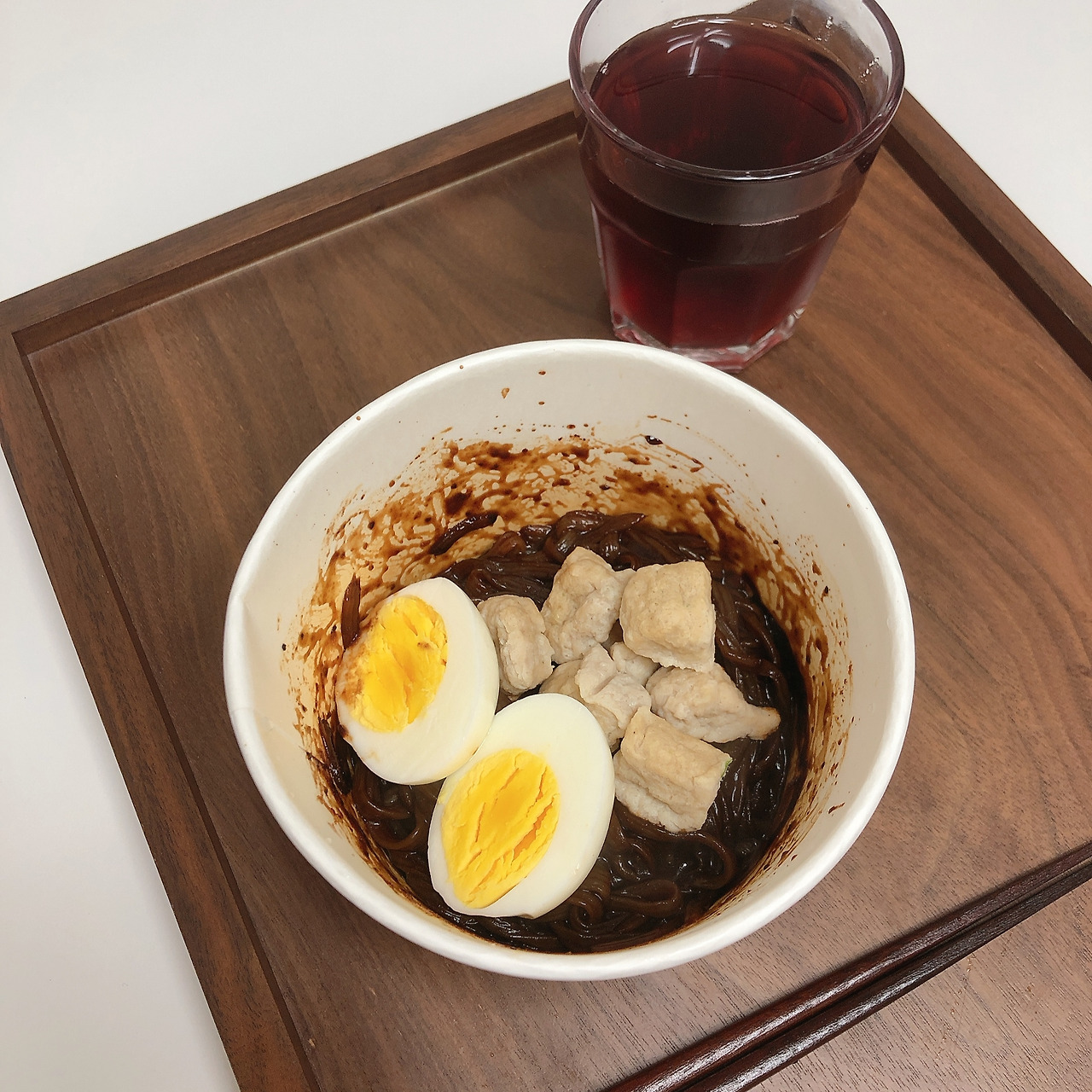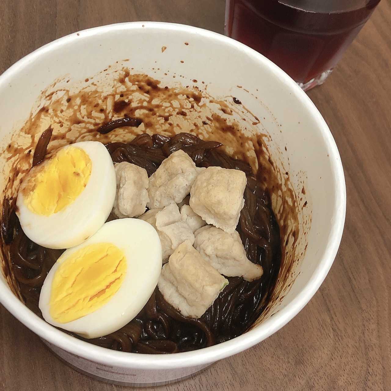 짜장엔 역시나 계란이 어울릴 것 같아서 삶은 계란을 하나 더해줬다. 그리고 또 혹시나 양이 적지는 않을까 걱정돼서 단백질 보충 겸 냉동실의 닭가슴살 큐브도 한 봉지 꺼냈는데 좋은 선택이었다. 면만 먹으면 맛도 양도 조금 아쉬울 것 같다. 조리는 전자레인지로만 해서 편하고 설거지도 안 생겨서 좋았다. 전자레인지에 돌릴 때부터 냄새가 장난이 아니었는데, 달콤 짭짤에 살짝 매콤함까지 더해진 완전 맛있는 짜장이었다. 면에 칼집까지 있으니까 소스가 더 잘 벤 것 같았다. 겨우 66칼로리로 먹을 수 있는 이런 자극적인 맛이라니 너무 좋다. 또 사야겠다.