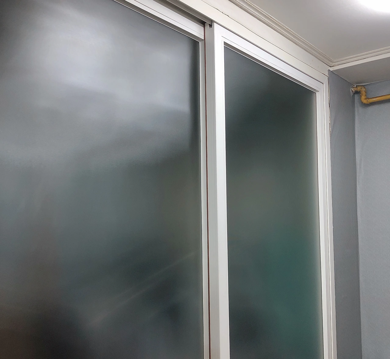 그래서 한참을 고민하고 폭풍 검색 끝에 샤시의 필름을 벗길 수 있다는 사실을 알아냈다. 생각해보니 샤시는 집 안에서 보이는 맨 앞쪽만 체리색이고, 뒤쪽은 모두 하얀색이었다. 원래는 하얀 샤시였던 것이다.