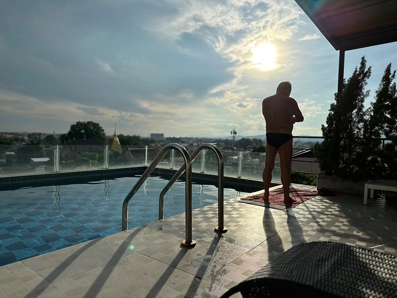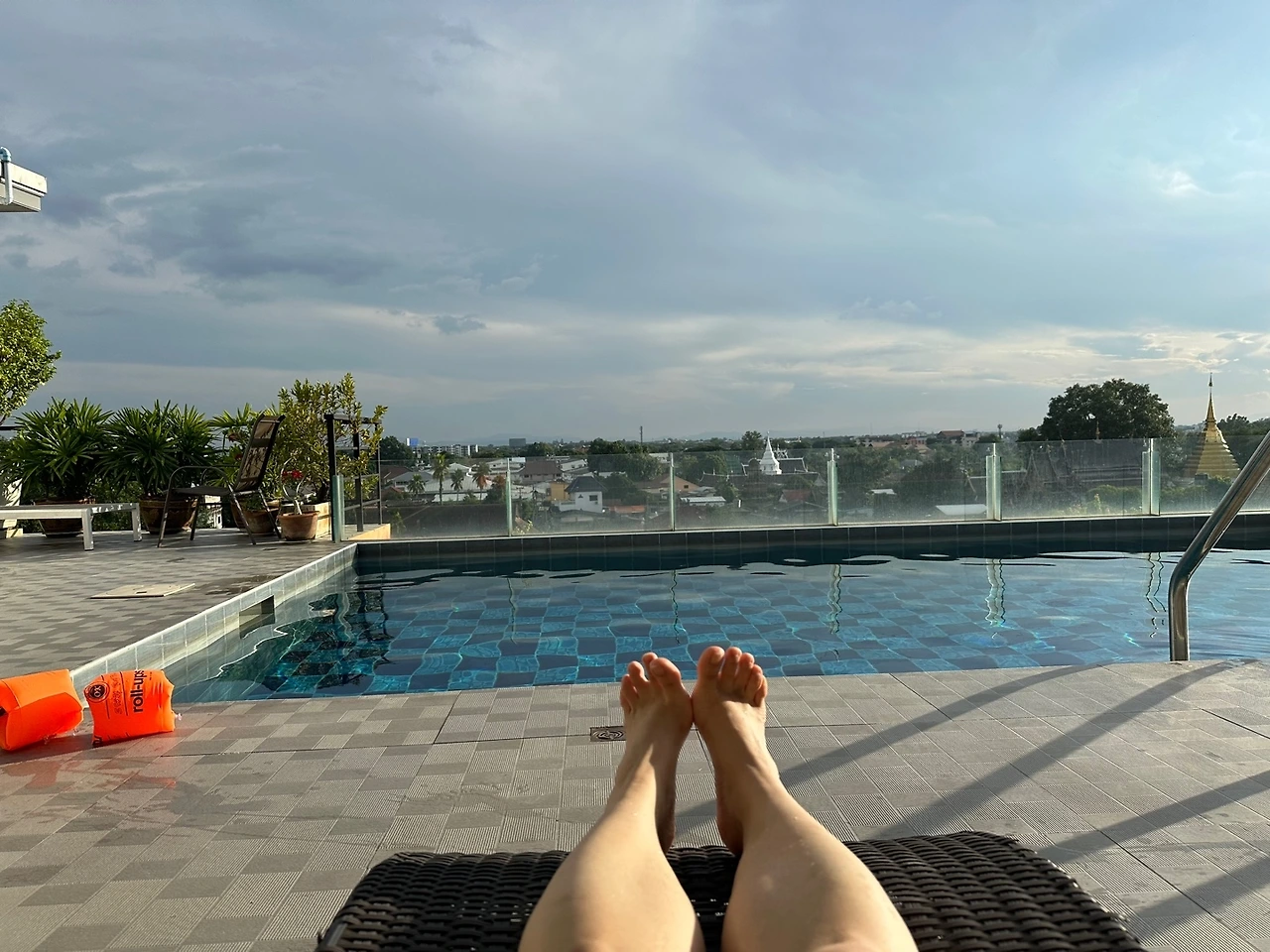 치앙마이에서 내가 살았던 레지던스에는 옥상 수영장이 있었는데, 6평? 정도 되어 보이는 크기에 120~130cm 높이를 가진 아담한 크기의 수영장이었다. 어라! 크기를 다시 회상해 보니 수영장... 보다는 풀(pool) 장이라는 표현이 더 적합할 것 같다. 그곳에서 만난 한국인 중년 부부는 방에 대해 불평불만을 쏟아냈지만, 나는 그곳이 무척이나 마음에 들었다. 나는 옥상 수영장에서 밤 수영을 즐기는 것을 무척 좋아했다. 레지던스에 머물렀던 사람들은 10명 중 9명이 서양인들이었고, 서양인들은 해가 가장 뜨거울 때, 옥상 수영장에서 일광욕을 하며 낮잠을 자는 것을 좋아했기에, 밤의 옥상 수영장에는 아무도 없었다.