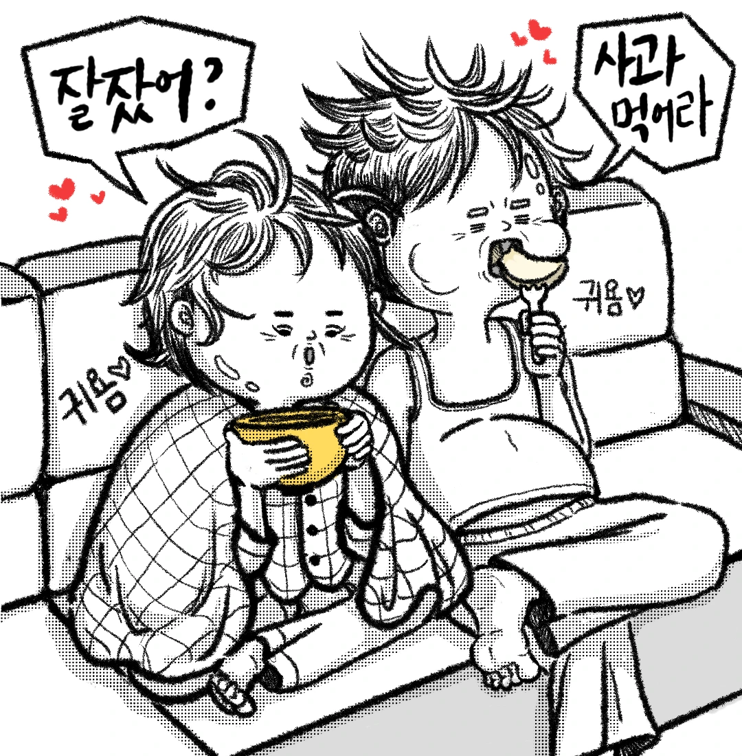 아침에 엄마, 아빠가 너무 사랑스럽더라구요.