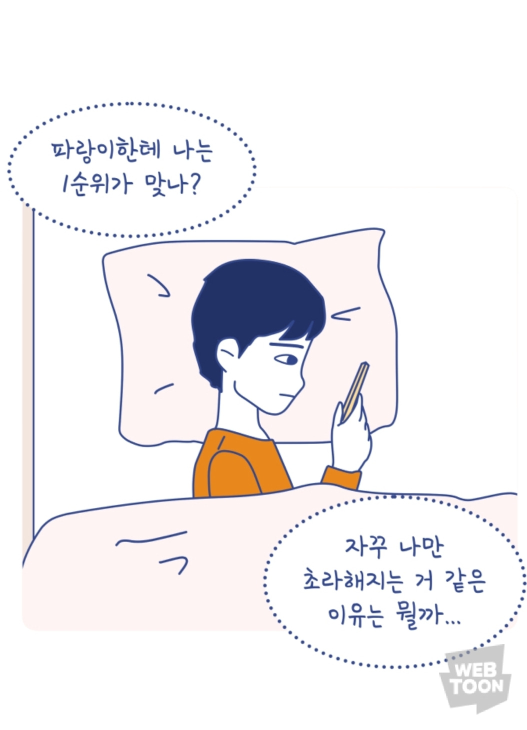 "1인용 기분"이라는 웹툰을 몰래 보다가 저번주와 이번주 편의 이야기를 몰아봤다. 장면 하나하나가 많이 공감 된다. 오늘의 나는 온통 되는 일이 없고 가는 곳마다 가시방석이다. 나의 감정에만 집중해서 주변에 사람이 없는 것은 아닐까 걱정된다. 휴가나왔다는 친구의 소식이 들려오지만 훈련소에 있을 때 편지한장 보내지 않아서 나를 미워하고 싫어하지 않을까 두렵다.