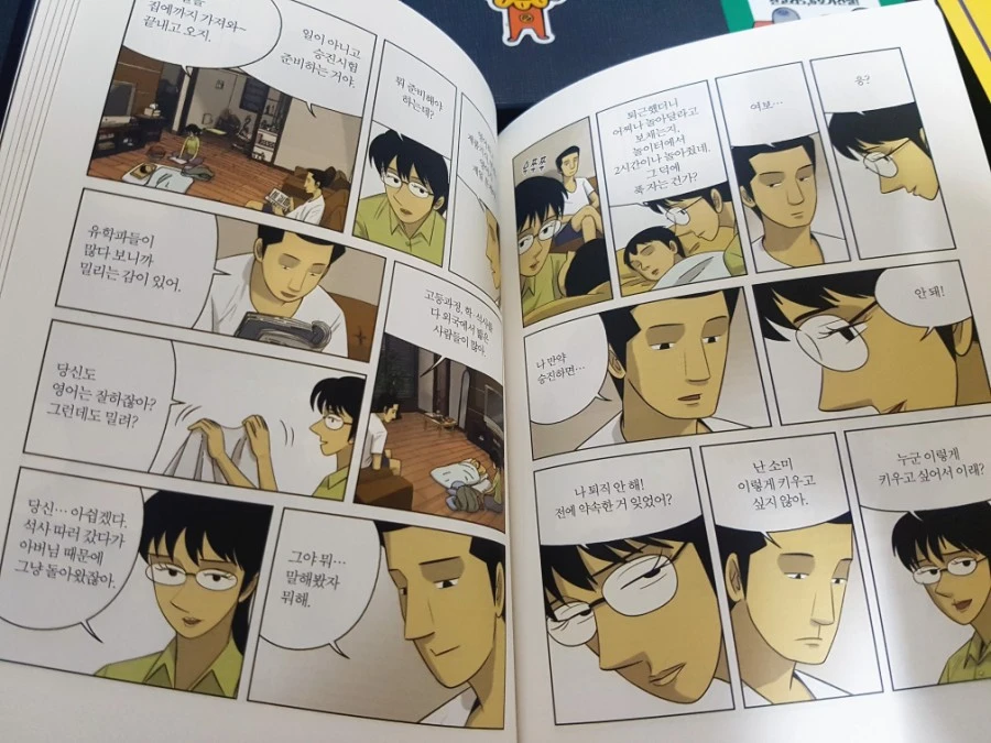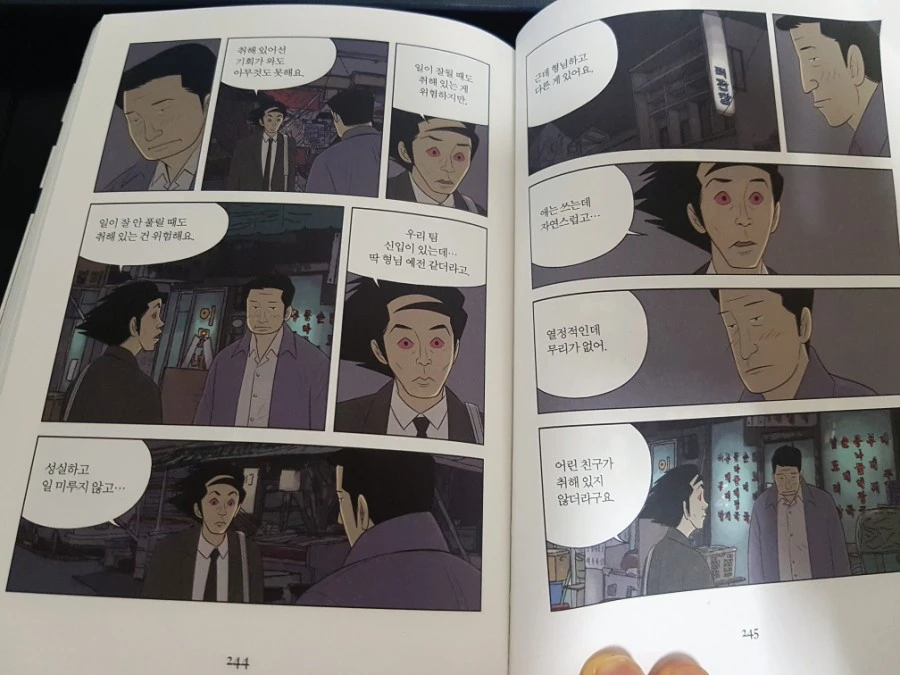 <미생>에 공감하는 사람들은 우리 가게 점장님 같은 사람들일 것이다. 워킹맘으로 일하면서 직장에서 온갖 스트레스에 시달리고 집에 와서도 집안일을 (아마도) 독박으로 해야하는 위치에 있는 여성 직원들이나, 아파트 빚을 갚기 위해서 승진에 목숨 걸고 임하는 그의 남편의 삶은 <미생>의 그것과 비슷하다. <송곳>에 공감하는 사람들은 나와 같은 가게의 아르바이트 생이거나, 우리 가게에 물건을 가져다 주는 특수고용노동자 아저씨들, 우리 가게가 있는 호텔에 있는 기술직 직원들 사무실의 스트레스가 잘못 튀면 자신들의 삶이 무너지는 사람들의 삶은 치열하고, 처절한 <송곳>의 그것과 비슷하다. 이 두개의 만화를 비교해서 함께 읽고 이야기나눈다면 흥미로울 것 같다.