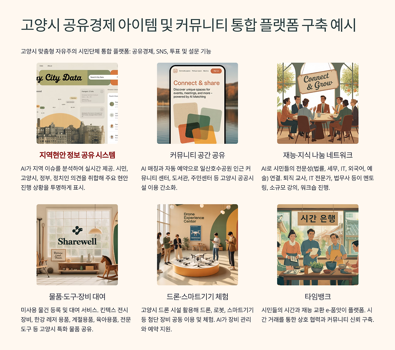 더 나아가 고양시에서 시작된 AI 기반 공유경제 시민참여 모델은 국경을 넘나드는 시민들의 직접적 협력과 연대라는 새로운 차원의 가능성을 열어준다. AI 플랫폼의 실시간 번역 기능과 문화적 차이를 고려한 정교한 소통 방식을 통해, 전 세계 시민들이 함께 글로벌 이슈에 대한 실질적 대안을 숙의할 수 있는 공간이 마련되는 것이다.