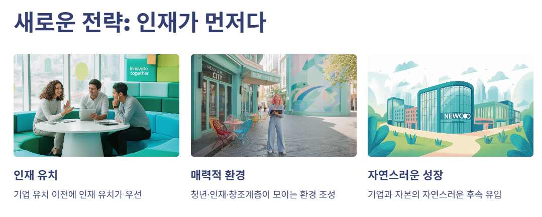'AI 도시'를 외치면서도 정작 AI 시대의 핵심 인프라인 데이터센터 유치에는 소극적인 모순적 태도 역시 문제입니다. 구태의연한 '기업 유치' 중심의 사고방식에서 벗어나야 할 때입니다. CJ 라이브시티처럼 기존 대기업도 떠나는 상황에서, 선제적으로 기업이 필요로 하는 양질의 인력 공급과 같은 핵심 인프라 구축 없이 무작정 기업을 유치하겠다는 것은 공허한 구호에 불과합니다. 이러한 편협한 시각으로는 진정한 도시 혁신을 이루기 어렵습니다.