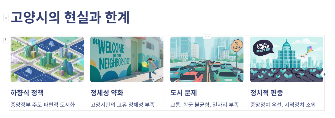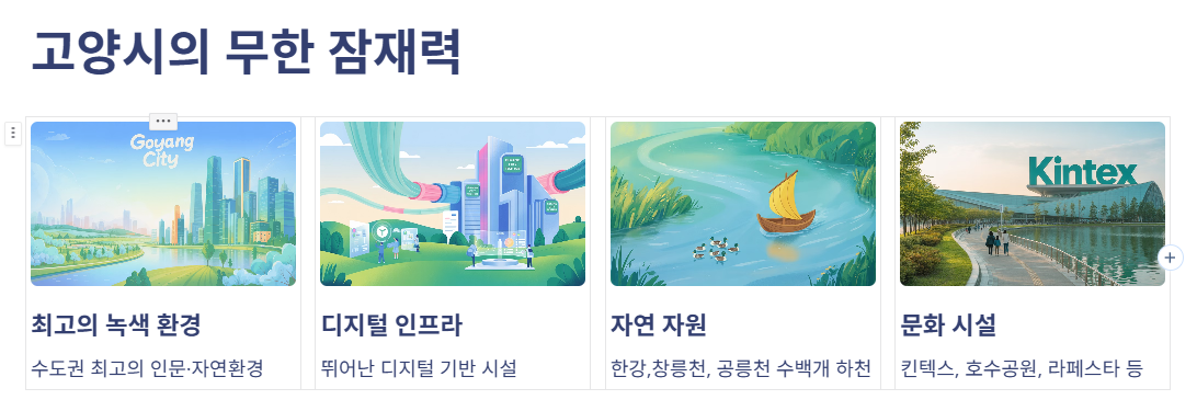 고양시가 가진 독보적인 자연, 문화, 예술, 디지털 연구개발 역량을 명확히 특성화하고, 한강과 여러 하천축, 그리고 킨텍스, 호수공원, 라페스타와 같은 지역 명소들을 유기적으로 연계하는 대담한 비전이 필요합니다.