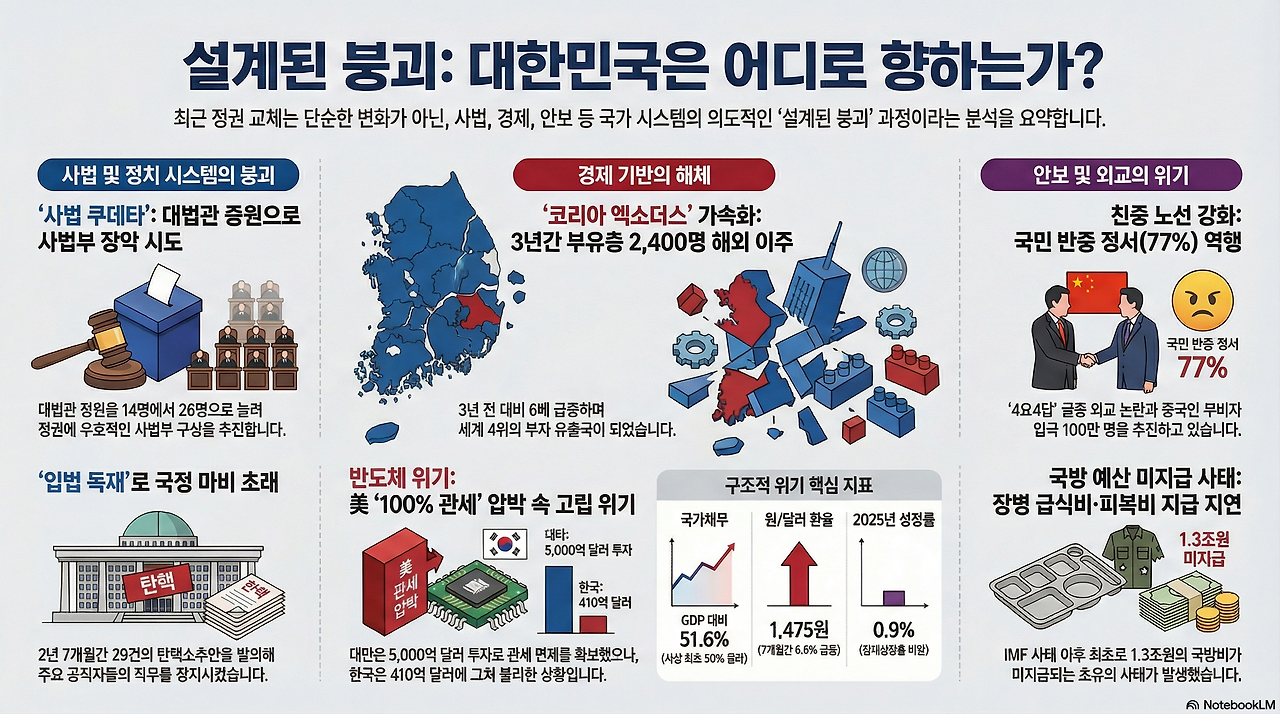 결국 질문은 하나로 귀결된다. 이 모든 것이 단순한 정책 실패의 누적인가, 아니면 의도된 국가 해체 프로젝트인가. 그리고 그 설계의 배후에는 누가 있는가.