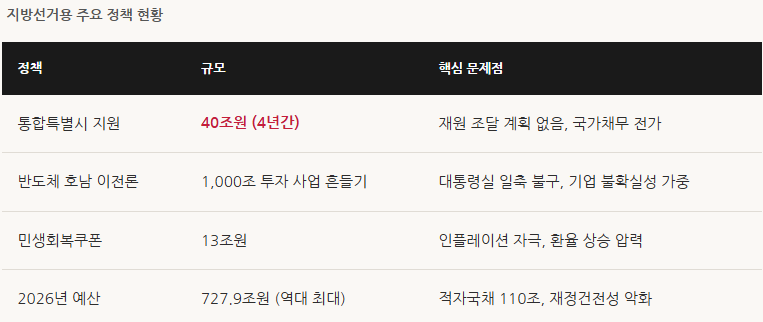 결국 국가채무로 남고, 저출산으로 이미 짐을 떠안고 있는 미래세대의 부담이 된다. "재원 마련은 차근차근 설명하겠다"는 말은 책임 있는 정부의 언어가 아니다. 국방비 1조 원 증액에는 인색하면서, 선거를 앞두고는 40조 원을 푸는 정부. 이것이 과연 국가 운영인가.