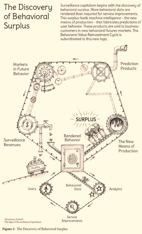 [사진 : "행동 잉여의 발견". From: Shoshana Zuboff, 감시 자본주의의 시대 (2019), p. 97.]