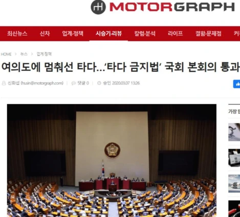 더불어민주당은 모두를 위한 법이라며 20203.7. 이른바 타다 금지법을 통과시켰다. / motograph기사 캡처인간이 지속 생존과 불편한 문제 해결, 자유와 행복을 위해 끝없이 생각하고 투쟁해온 산물이 문명이다. 끊임없이 새로운 새로운 과학기술이 나오고 그에 따라 사회 시스템 등 구조도 변하며 발전한다. 당연히 그 과정에서 기존 질서와 충돌하게 되는데 이를 조정하는 아픔이 수반한다.