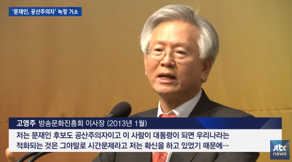 고영주 전 방송문화진흥회 이사장은 18대 대선 직후인 2013년 1월 보수 성향 시민단체 신년하례회에서 당시 대선후보였던 문재인 대통령을 가리켜 “부림사건의 변호인으로 공산주의자이고, 이 사람이 대통령이 되면 우리나라가 적화되는 것은 시간문제”라고 주장했다.