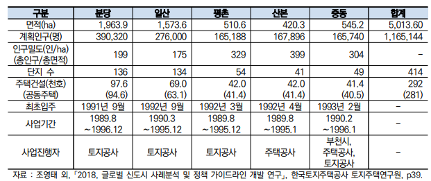 1기 신도시의 평균 용적률은 ▶분당 184% ▶일산 169% ▶평촌 204% ▶산본 205% ▶중동 226% 등입니다. 특히 일산 신도시는 기업과 일자리는 부족한 베드타운이지만 1인당 공원면적은 20.8㎡로 높은 편으로 쾌적한 환경이 유일한 장점입니다. 일산신도시 경우 476만 평에 6만 9000여 세대 276,000명이 살도록 계획한 도시입니다.