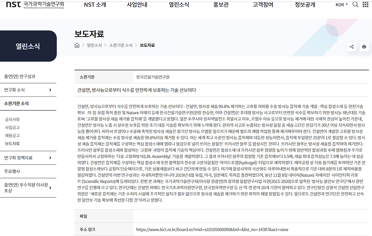 방사능 노출 초동대응 물안보기술 홍보 동영상 캡처 / 출처 VD production2011년 3월 11일 후쿠시마 원자력발전소 사고 이후 한국건설기술연구원 김영석 박사 등 전문가들은 방사능 유출에 대비하여 물 안보 대책 마련을 해야 한다고 박근혜 정부에 건의하였다.