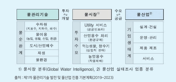 물관리기술, 물시장 및 물산업 간의 관계 / 출처 한국수자원학회 '물과 미래' 중