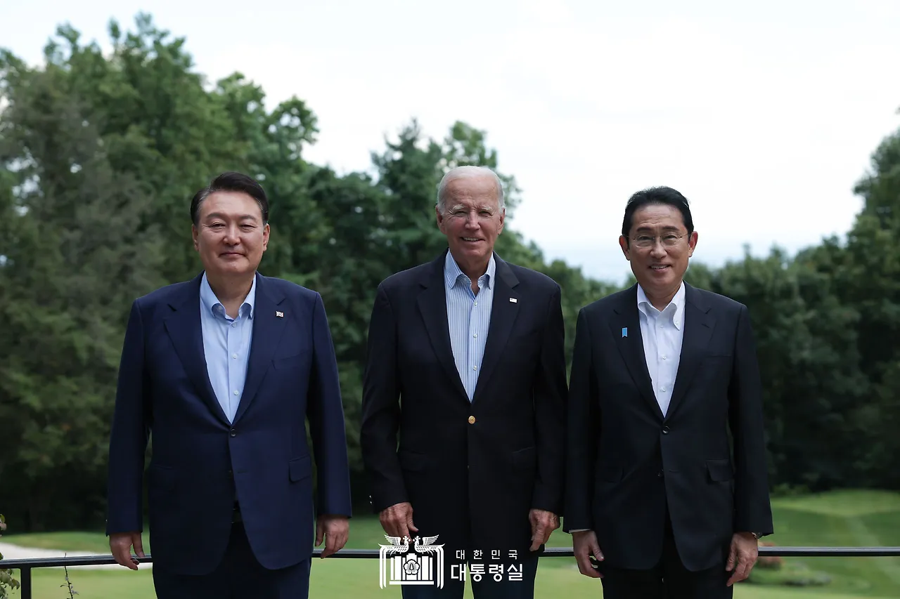 8월 18일 이 글을 쓰는 중에 미국 캠프데이비드에서 윤석열 대통령은 조 바이든 미국 대통령, 기시다 후미오 일본 총리와 오찬을 가졌다. / 대통령실 홈페이지
