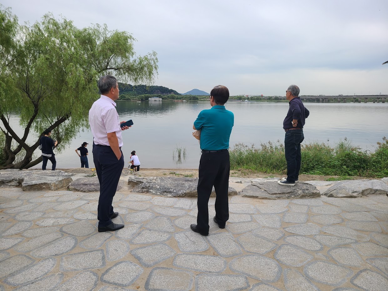 2023.09.25. 고양시 행주산성 인근 역사공원에서 한강을 바라보고 있는 김영석 박사(가운데) / 촬영 박대석박대석) 국제적인 물 부족 현상에 한국이 취할 태도는?