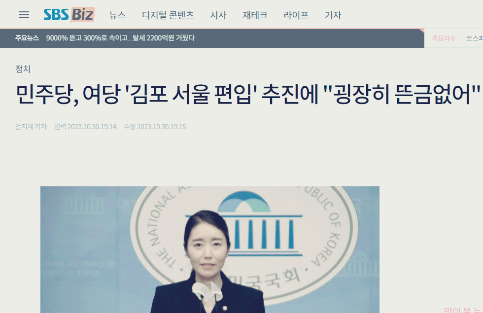 김포시의 서울 편입을 주민이 원하면 국민의힘이 당론으로 추진한다고 10월 30일 발표하자마자 더불어 민주당은 즉각 "뜬금없다.'라고 대변인이 비판했다.