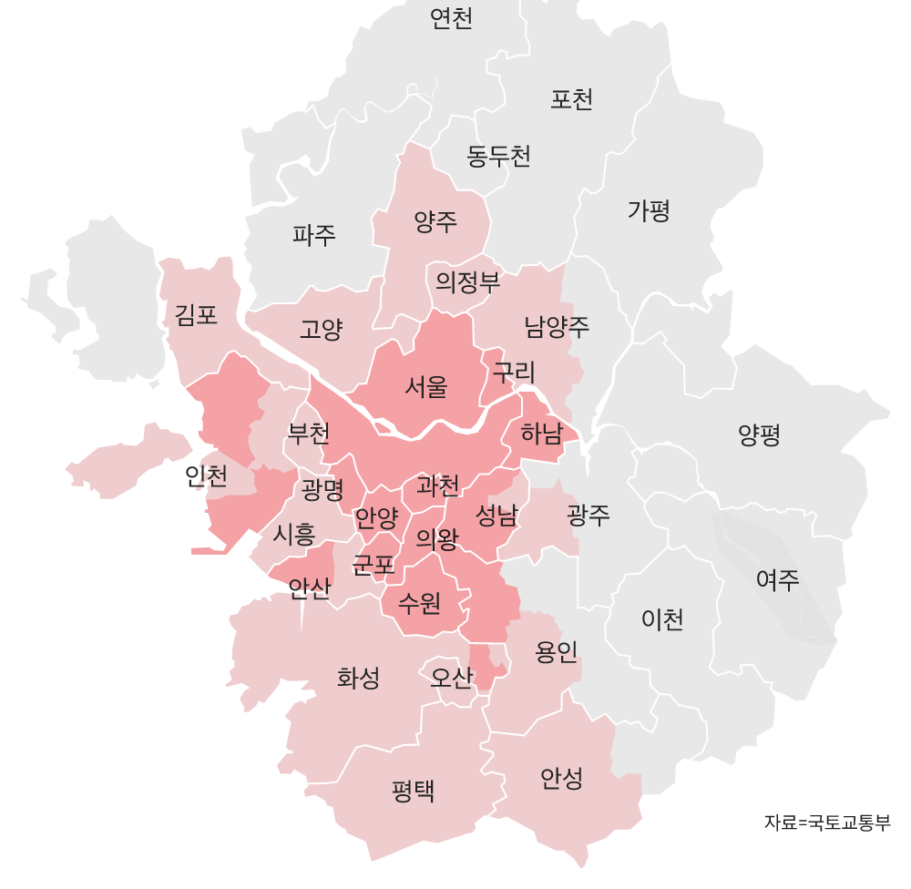 반면에 서울 인근 경기도에서 매일 143만 명이 통근, 통학 등을 한다. 사실상 서울과 고양시, 김포시 등 수도권 주변도시는 하나의 생활권역이다. 이처럼 수도권을 구성하는 서울, 경기, 인천은 하나로 얽히고설킨 동일 생활권이자 동일 경제권, 문화권이기도 하다.