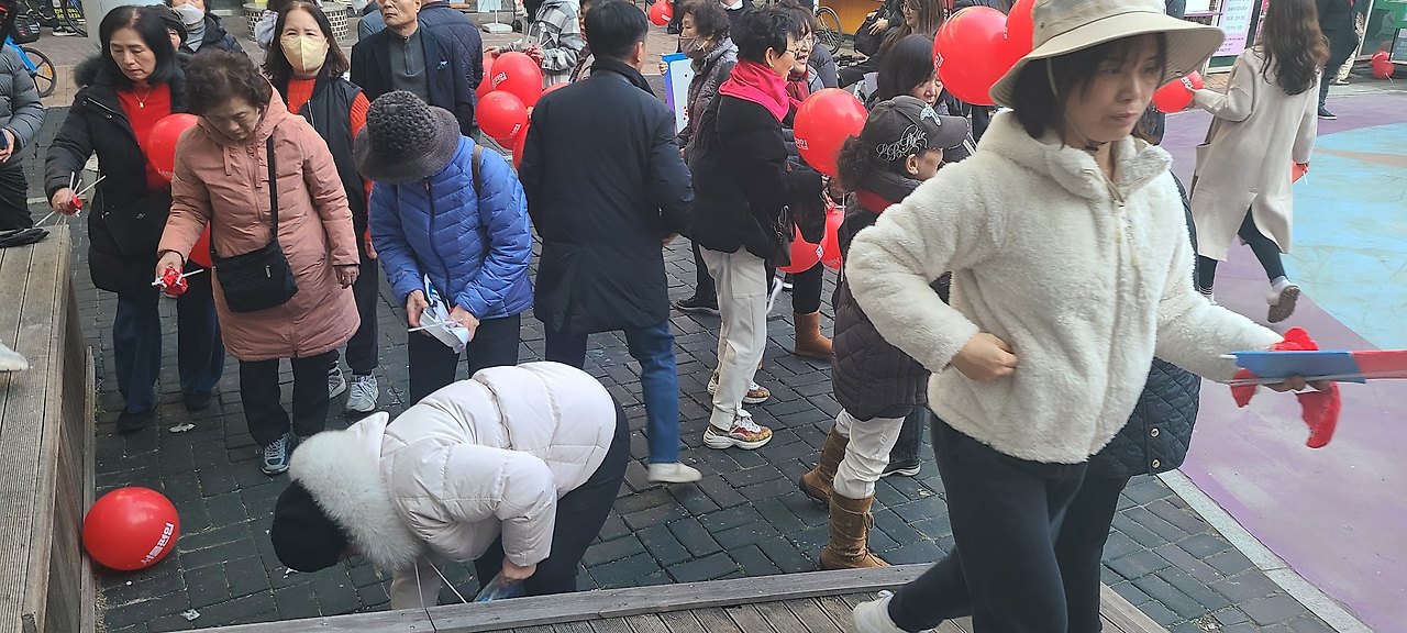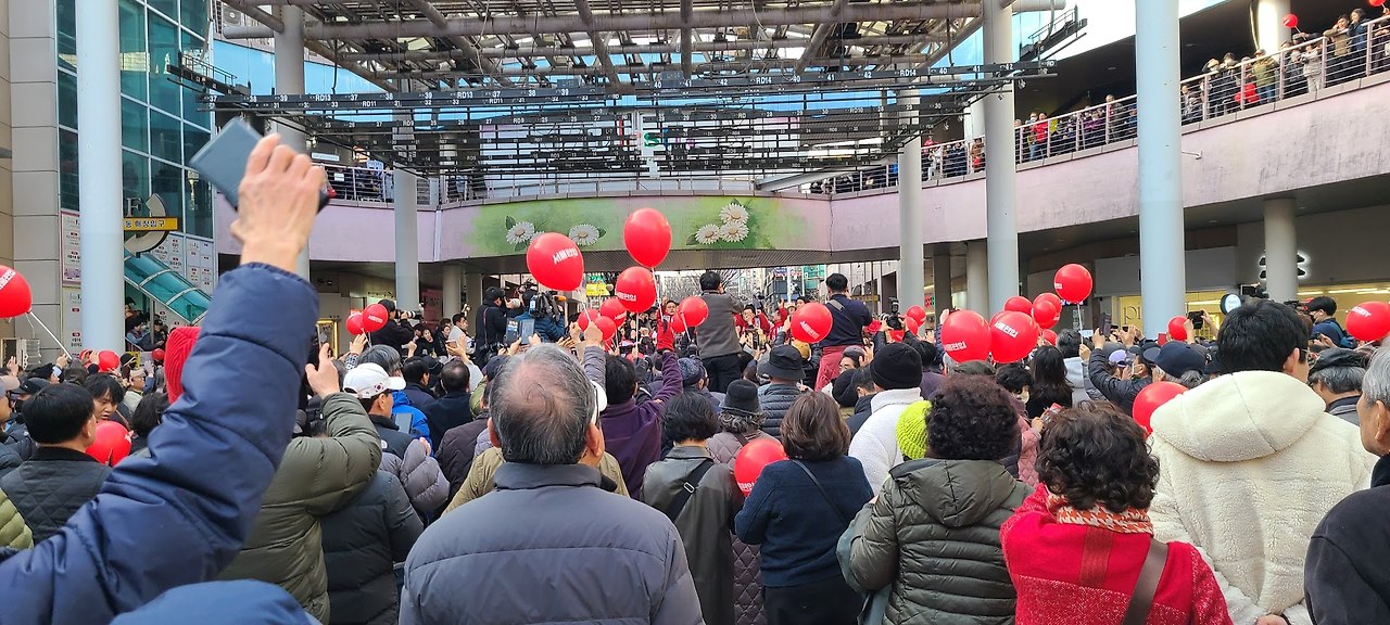 이날 시민들이 소액모금으로 구매한 '서울편입' 문구가 새겨진 빨간 풍선이 라페스타를 뒤덮었다. 한동훈 비대위원장 등 국힘관계자는 물론이고 시민들도 축제 같은 뜨거운 열기를 공유했다.