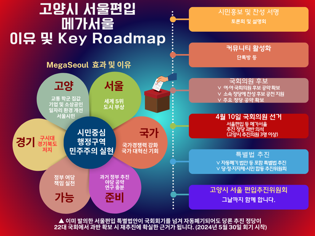 고양시는 이념, 진영, 여야를 떠나 서울편입이 선택이 아니라 필수였다. 뿐만 아니라 시민편의 중심의 행정구역 민주주의를 실현하는 일이다. 시민운동이 필요한 일이었다.