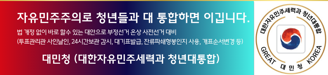 이에 우리 ‘대민청(대한자유민주세력과 청년 대통합)’ 회원 일동은, 자유민주주의 수호와 정권 교체를 열망하며 현 지도부에 엄중히 요구합니다.