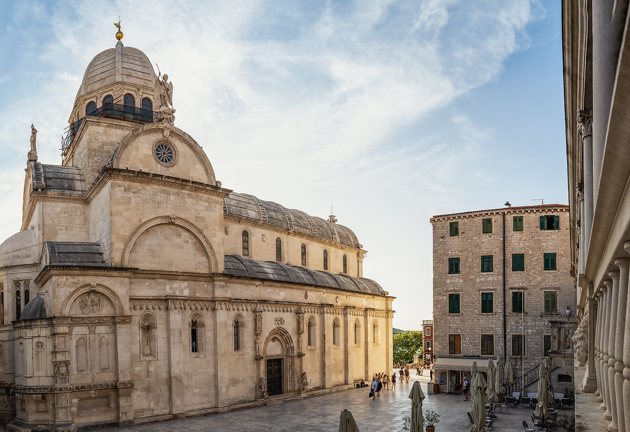 이곳의 시그니처 야고보 성당은 시베니크 성당이라고도 하는데, 유네스코 세계문화유산으로 지정되어 보전되고 있으며, 이 곳에 역사적 유물을 보기 위해 왔다면 가장 중요한 건축물이라 여기를 빼놓을 수는 없다.