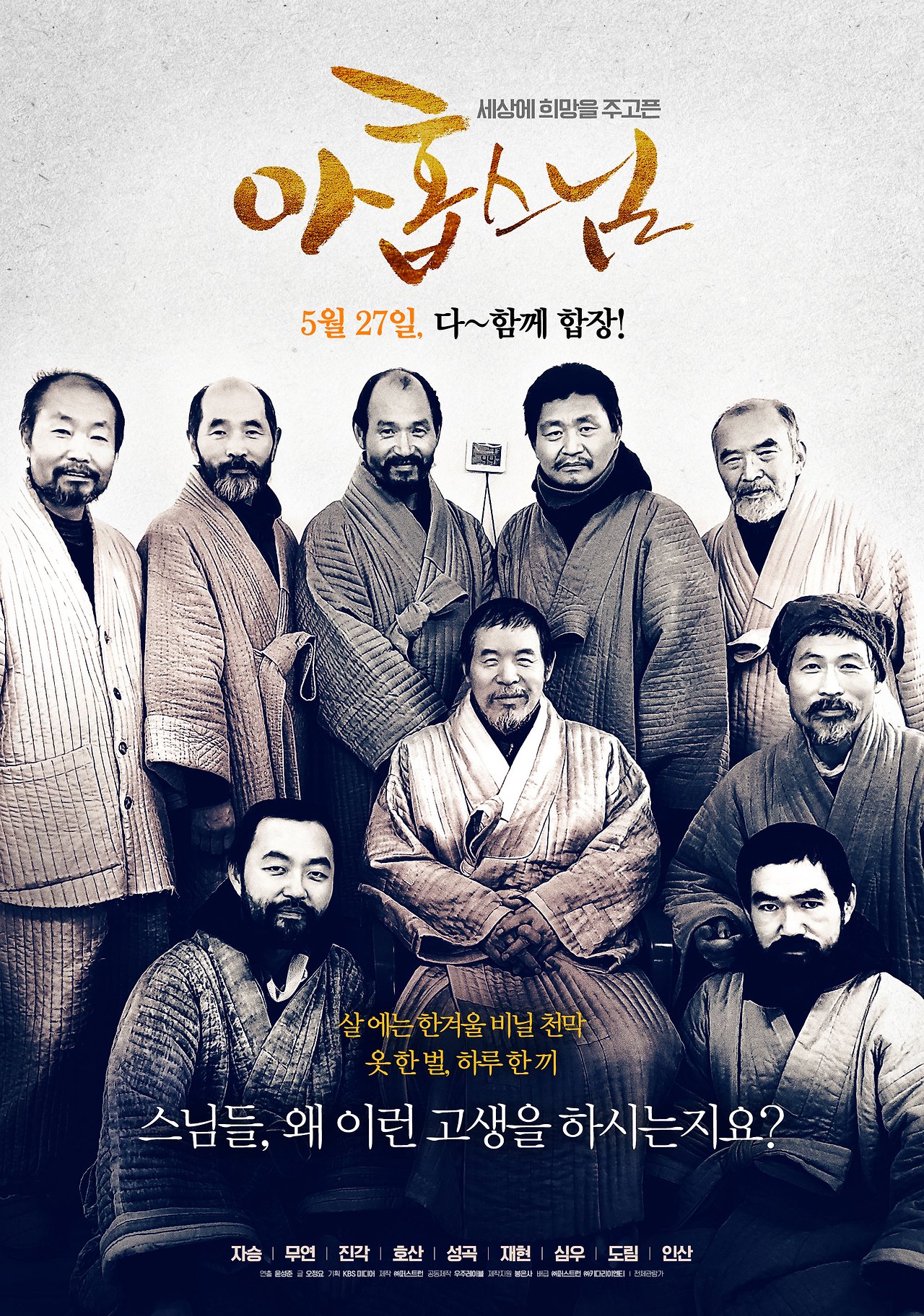 8위는 신작인 <아홉 스님>입니다. 한국 불교 역사상 최초의 '천막 동안거'로 알려진 승려들의 수행기를 다룬 작품이라고 하네요. 주말 동안 5천여 명의 관객을 동원, 금주 중 누적 관객 1만 명을 넘어설 것으로 보입니다.