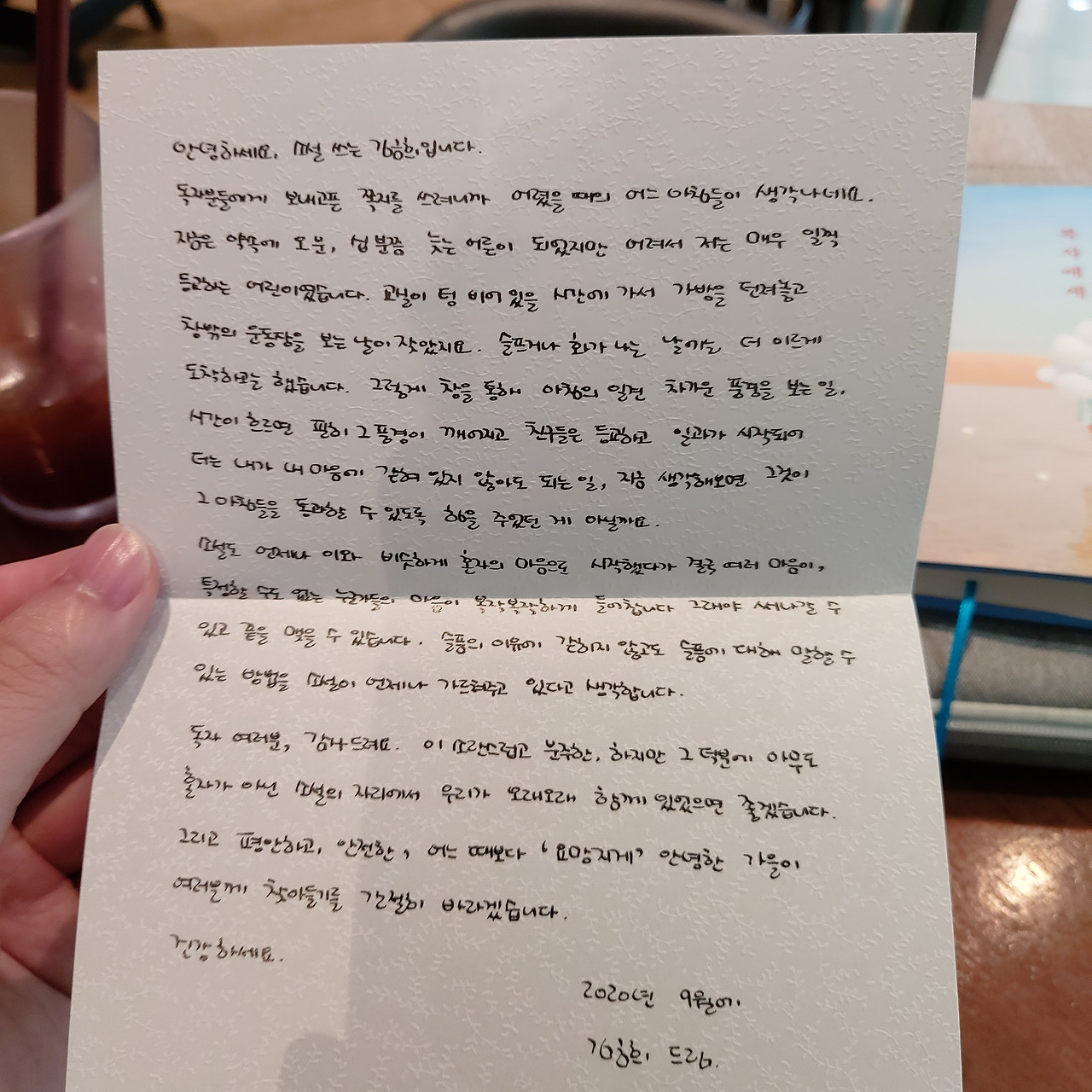 좋아하는 것을 좋아하는 일에 관해서라면 여러 차례 언급해왔지만 오늘도 한 번 더 써야겠다. 예약판매 후 2주 정도를 기다려 『복자에게』를 받은 날. 어떤 작가나 작품을 좋아하는 건, 그(들)의 존재가 단지 호감이나 매력 같은 것만을 주기 때문이 아니라 매 순간 나아가면서도 한결같은 방식으로 거기 그 자리에 있어주었기 때문이다. 『나는 그것에 대해 아주 오랫동안 생각해』를 읽었을 때나 『경애의 마음』을 접했을 때나 『사랑 밖의 모든 말들』을 만났을 때나 계속해서 한 작가를 좋아하는 작가의 목록 맨 앞에서 언급할 수 있다는 사실에 감사함 같은 것을 느끼곤 한다. 이 이야기도 종종 언급했던 것이지만 이것 역시도 오늘 한 번 더 써야겠다. 나는 픽션을 쓰는 사람이 아니어서, 이렇게 마음을 다해 하나의 세계를 만드는 사람(들)에 대한 경외의 마음이 있다. 그리고 마음을 다해 쓰는 사람의 이야기에 언제나 벅참을 느끼고 감동이나 위로를 만나며 세계의 확장을 경험하게 된다. 이 소설 덕분에, 그리고 이 소설을 쓰는 사람이 있다는 것 덕분에, 나 역시 혼자가 아닌 나날을 보낼 수 있을 것 같다. 좋은 영화를 만나는 일만큼이나 좋은 책을 만나는 일이 행복할 수 있는 건, 바로 이런 책을 마주하는 순간 덕분이다. 첫 장을 시작도 하지 않은 채 곧장 작가의 말부터 펼쳤지만, 그럼에도 나는 분명 이렇게 말할 수 있다.