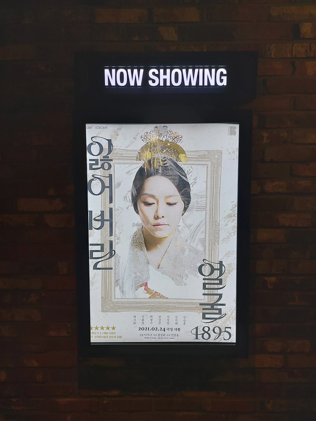 <잃어버린 얼굴 1895>(2021)는 2013년 초연돼 2020년 7월 4연 막을 올린 동명의 창작가무극 실황을 담은 작품이다. '1895'라는 제목에서 연상되는 것과 달리 '명성황후'와 을미사변 자체보다는 가공의 인물인 '휘'와 '선화'에 더 무게가 실렸다는 인상을 주면서도 전체의 중심을 지탱하는 것은 차지연이 연기한 '명성황후'가 된다는 점이 새롭게 다가온다. 코로나 19로 인해 작년 4연 당시 공연 기간이 예정보다 짧아졌다는 점에서도 2021년에 만나는 실황은 한층 더 일상 바깥의 것으로 느껴지는 면도 있다.