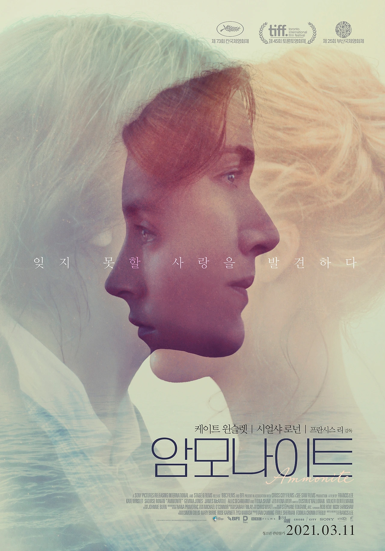 시얼샤 로넌과 케이트 윈슬렛이 주연한 프란시스 리 감독의 <암모나이트>(배급: 소니픽처스코리아)는 칸, 토론토, 시카고 등 여러 해외 영화제를 통해 일찍이 주목 받은 작품이다. 고생물학자와 상류층 부인을 주인공으로 한 멜로로, 작년 상반기 개봉한 <타오르는 여인의 초상>을 얼핏 연상시키기도 한다.