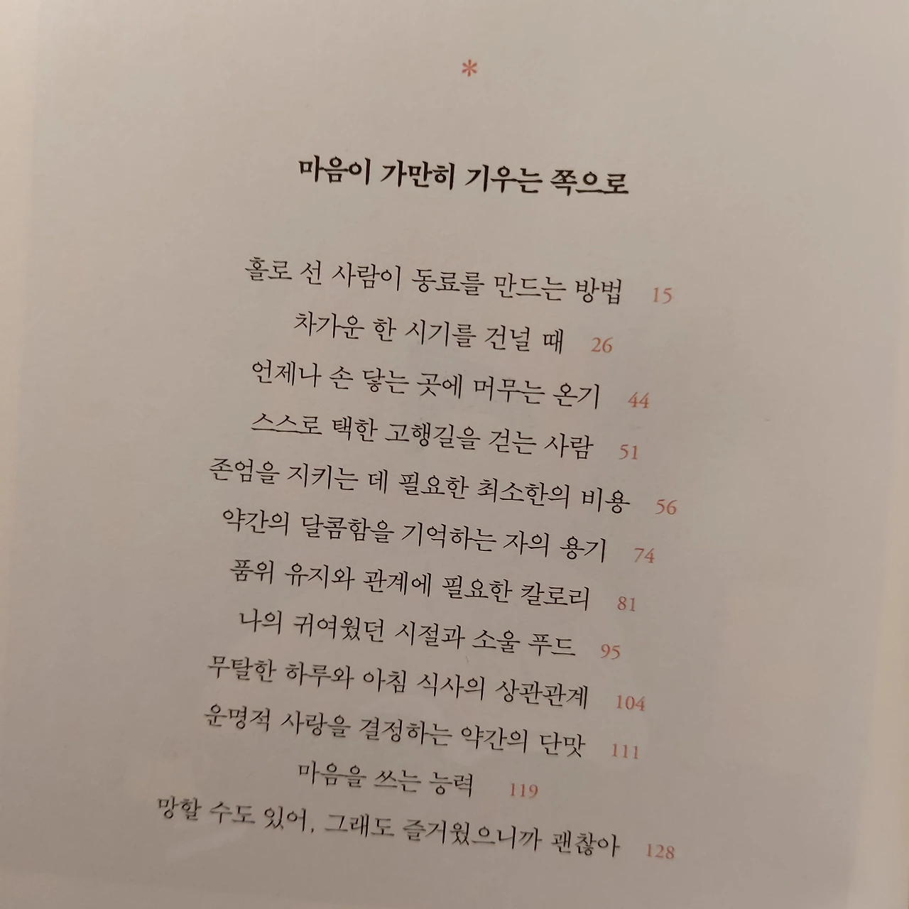 "'정성껏'이라는 단어를 좋아한다. 내게 음식과 요리는 일상적인 행위인 동시에 사람과 삶을 한층 더 정성껏 바라보게 하는 대상이었다. 마음 안에 차오르는 길고 내밀한 언어들을 납작하게 접은 채 '좋아요' 하나로 반응을 보이면 그만인 세상에서, 오랜 시간을 필요로 하고 복잡한 과정을 거쳐야 하는 요리는 확실히 비효율적인 행동일지 모른다. 하지만 그 안에는 감정의 맥락과 소통의 가능성이 존재한다. 단순히 허기를 달래는 것과 좋아하는 것을 취할 때의 마음을 구별하게 된다. 한 그릇의 요리에 담긴 의미는 그렇게 단순하지만은 않다."