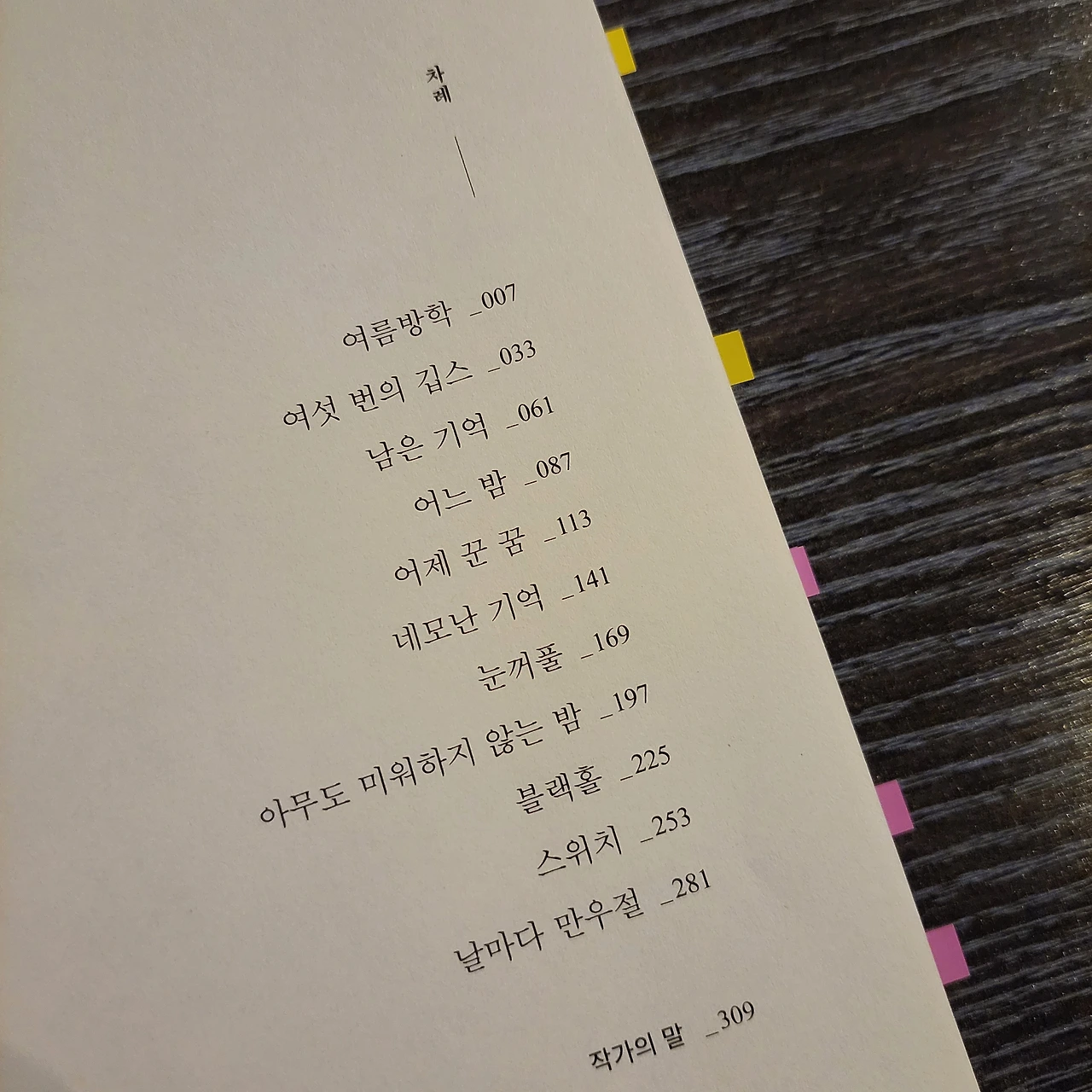 소설집으로 묶인 단편들 속 주인공들은 10대부터 할머니까지 다양하지만 어떤 이들은 얼핏 서로 같거나 닮은 사람인 것처럼 읽히기도 한다. 가령 “말린 단풍잎을 책갈피로 쓰던”(10쪽, 「여름방학」) ‘나’와 “책갈피에 단풍잎을 끼워두는”(107쪽, 「어느 밤」) ‘나’라든지. 혹은 “손자에게 아직도 엄마에게 혼나는 꿈을 꾼다고 말해주”(75쪽, 「남은 기억」)는 ‘영순’과 “새끼손까락을 걸고 약속을 했다. 그러자 이 모든 게 내가 어젯밤 꾼 꿈처럼 느껴졌다”(139쪽, 「어제 꾼 꿈」)라고 하는 ‘나’라든지. 그들은 저마다 감당하기 벅찬 역사를 살아내는 중이고, 그것들은 소설이 된다.
