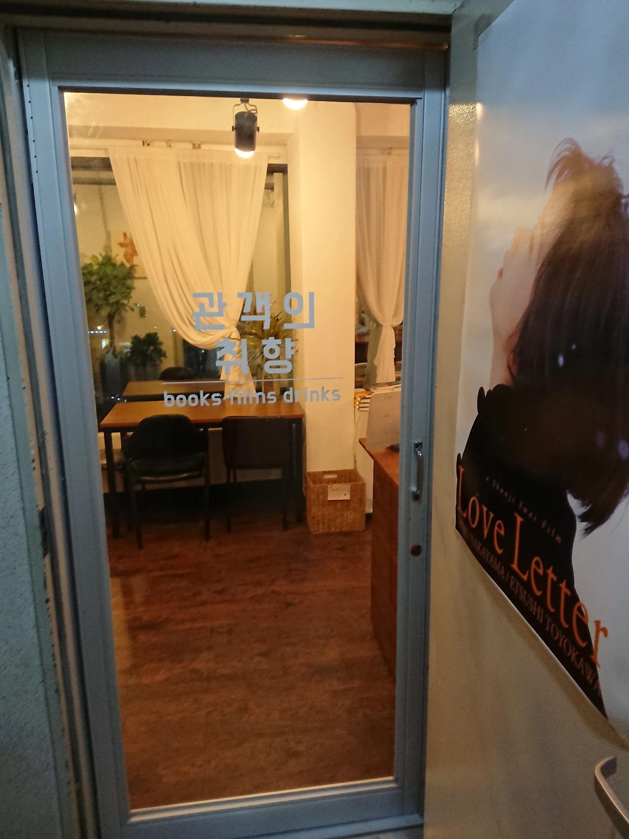 사진첩을 뒤져가며 확인한 ‘관객의취향 첫 방문일’은 2018년 7월 19일로 되어 있다. 가볼 일 없던 봉천동 현대시장입구에, 2층에 있고 책, 커피, 맥주, 와인을 판매하며 매일 영화를 상영한다고 쓰여 있는 책방의 존재. 그 해에 알던 지인이 “영화 책방이 있다”라며 추천해 준 곳이었다. 손님이 나 밖에 없었던가 아니면 한 명 있었던가. 조용히 음악이 흘러나오는 2층 곳곳을 훑다 커피와 ‘하울 정식’을 시켰다.