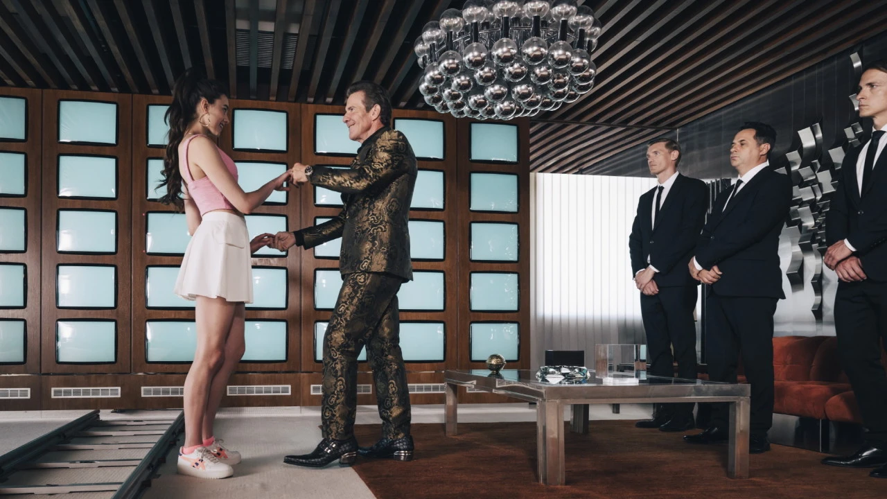 1962년생인 데미 무어가 연기한 엘리자베스 스파클은 분명 이름처럼 쏟아지는 스포트라이트를 가득 받는 전성기를 보냈을 것이다. 그러나 프로듀서 하비는 "50세가 넘으면 끝"이라는 식으로 노골적으로 엘리자베스를 수명을 다 한 물건 취급하고 그 자리는 금세 엘리자베스가 서브스턴스를 주입해 탄생한 또 다른 자신, 수(마가렛 퀄리)가 대체한다. 여기에는 그동안 수많은 영화나 TV시리즈에서도 이미 조명된 바 있는, 할리우드라는 키워드로 대표되는 쇼 비즈니스와 엔터테인먼트 업계의 어두운 면이 담긴다.
