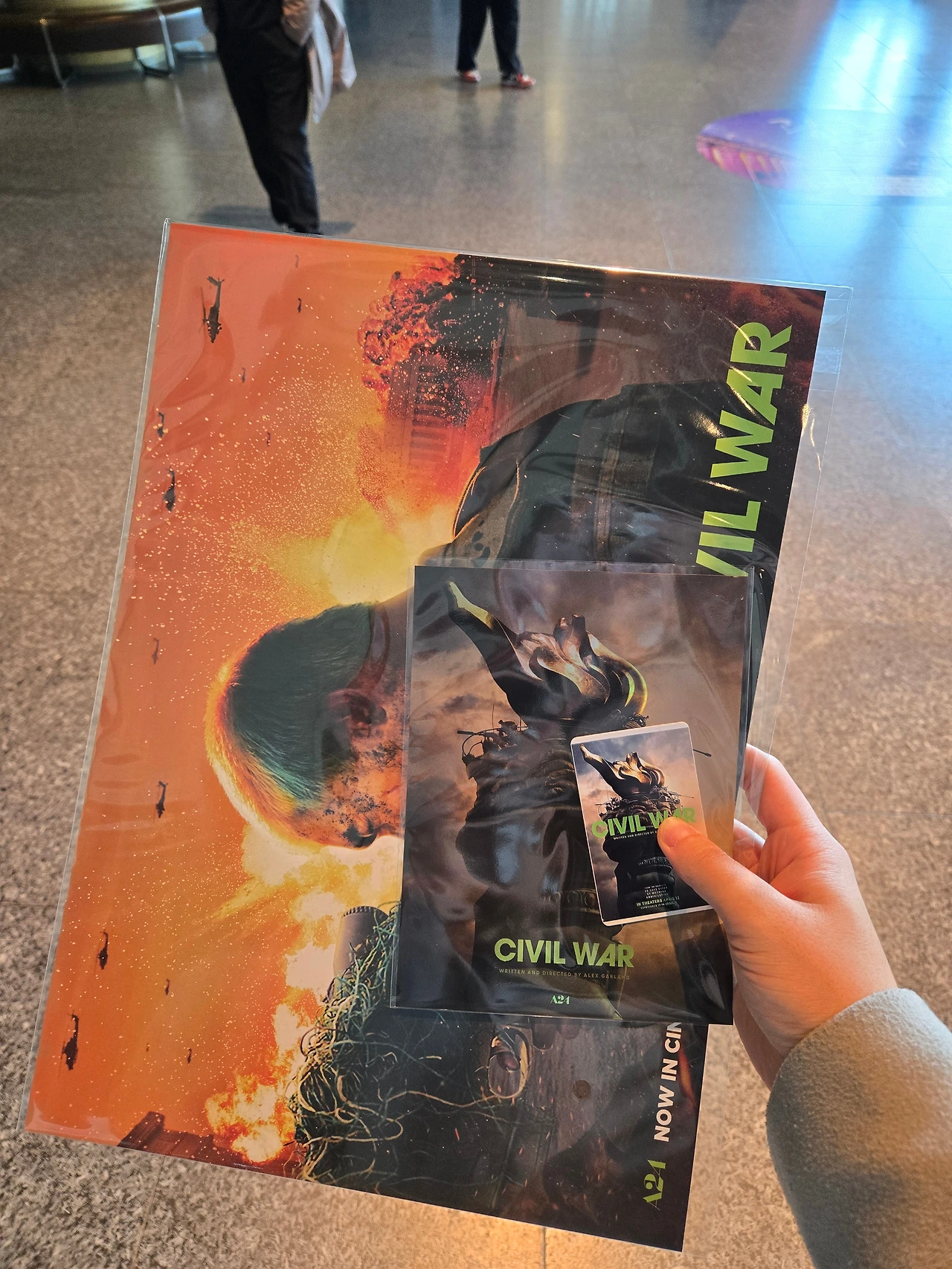 종군 사진기자의 시점에서 펼쳐지는 영화 <시빌 워: 분열의 시대>(2024)는 포격이 오가는 최전선에서부터 내전과 일부러 거리를 둔 채 무관심하게 일상을 보내는 곳, "어떤 미국인"이냐고 물으며 총구를 들이대는 곳까지 오가며 내전이 벌어진 가상의 현대 미국을 배경으로 한다. 연대를 특정하지 않지만 적어도 대한민국에서는 2024년 12월 31일 극장 개봉했다는 극장 바깥의 배경 자체가 이 영화를 다른 방식으로 입체적으로 보이도록 만든다.