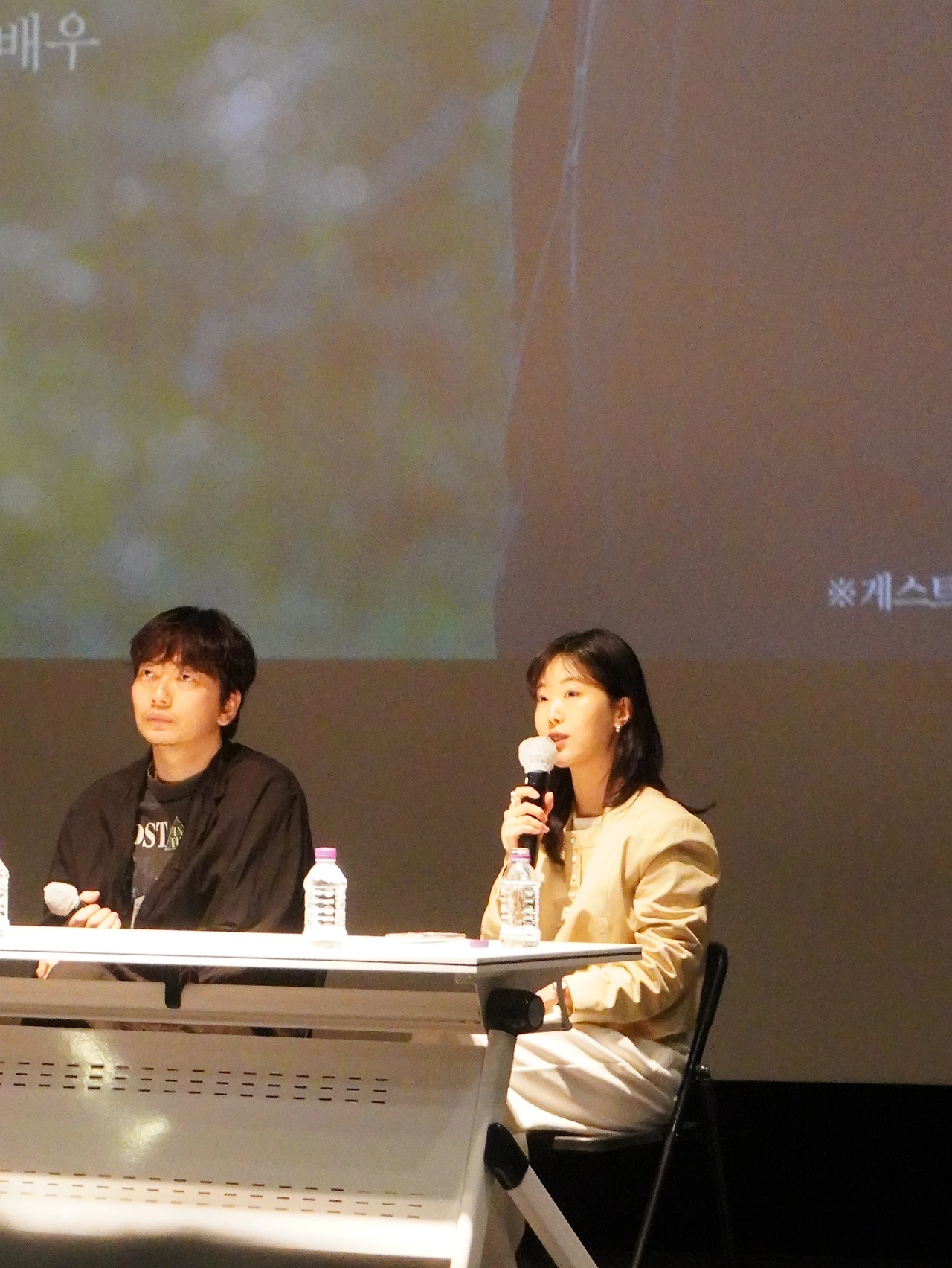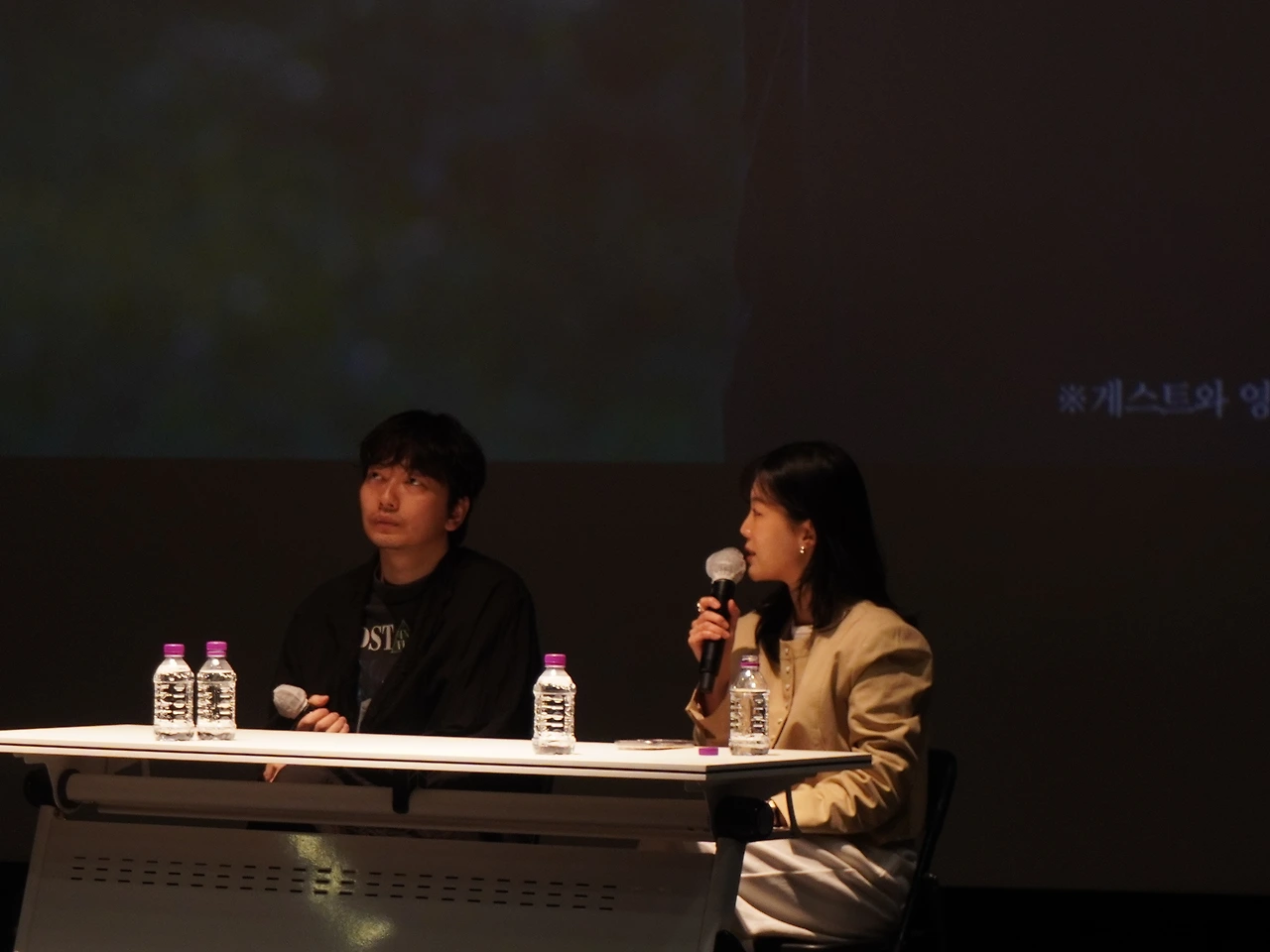 도심 속에 자리 잡은 예술영화관이라는 씨네큐브의 특수성과 이 극장 상영관의 특징 - 가령 광고 없이 정시 시작하며 상영 시작 10분 후부터 입장이 불가하고 엔딩크레디트가 끝까지 지나가기 전에 상영관 내 불이 켜지지 않는 점 - 등에 대한 가벼운 이야기와 두 감독과 배우의 재회 소감 등으로 시작한 이번 토크는 본격적으로 포스트 팬데믹과 스트리밍 서비스의 시대에 아직도 '극장'이라는 공간이 우리 관객들에게 어떤 의미를 갖는지에 대한 화두로 이어졌다.