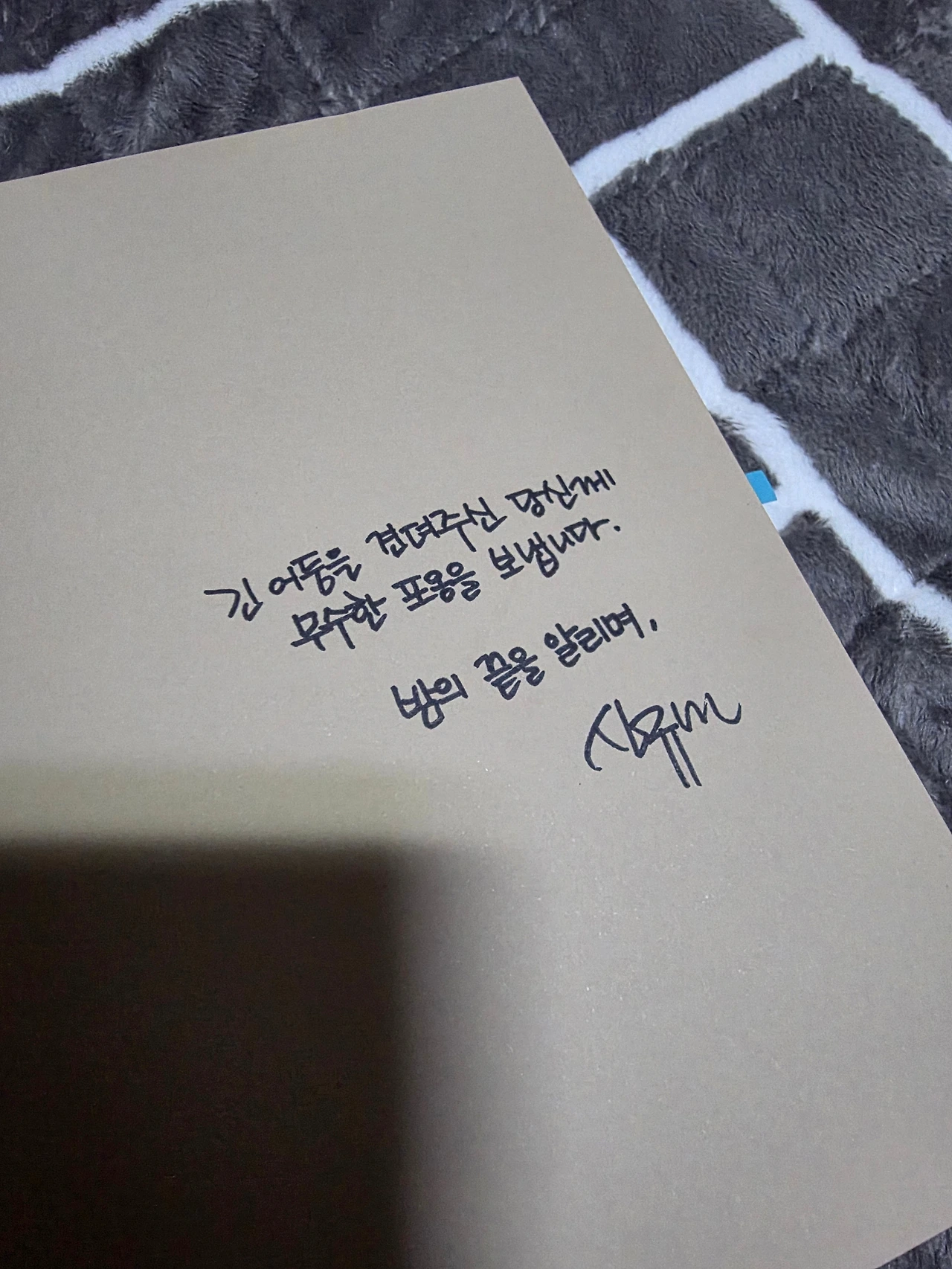 11월 말에 다녀온 콘서트에서는 유독 눈에서 뭔가가 볼을 타고 뚝둑 내리는 순간들이 더 많이 있었다. "룸메이트가 아닌 룸메이트가 없는 세상에서는 살아가는 법도 사랑하는 법도 다 잊어버린 것 같다"며, "여러분에게 저의 생존을 걸고 있다"며 울먹거리는 이의 진심이 저 멀리에서도 보여서. 실망의 순간에도 사랑이 공존할 수 있다고, 다시 발견하고 마치 불처럼 붙잡고 살아 있자고 말해주는 사람이 부르는 내 인생의 노래가 흘러나오는 내내 손수건을 꼭 쥐고 있었다. "내가 하는 모든 말과 음악들은 당신을 사랑한다는 뜻"이라는 사람의 말과 음악이 거기 있었고 무대가 끝난 뒤에도 남아 있었다. 살아갈 남은 일들이 그저 하나의 소로에 불과할지라도. 아무래도 괜찮을 것 같다. 저도 저의 전설이 되겠습니다. 살아있겠습니다.