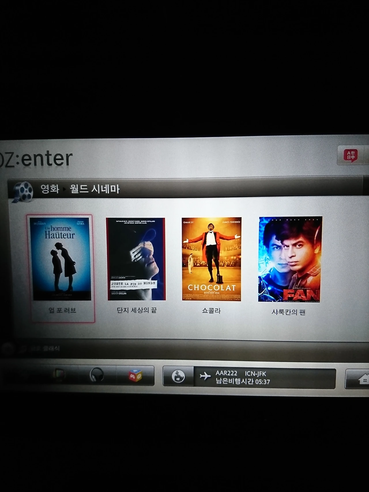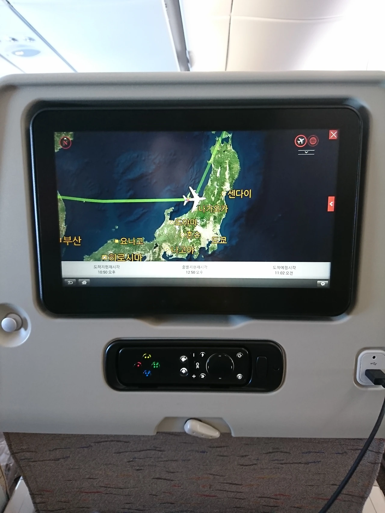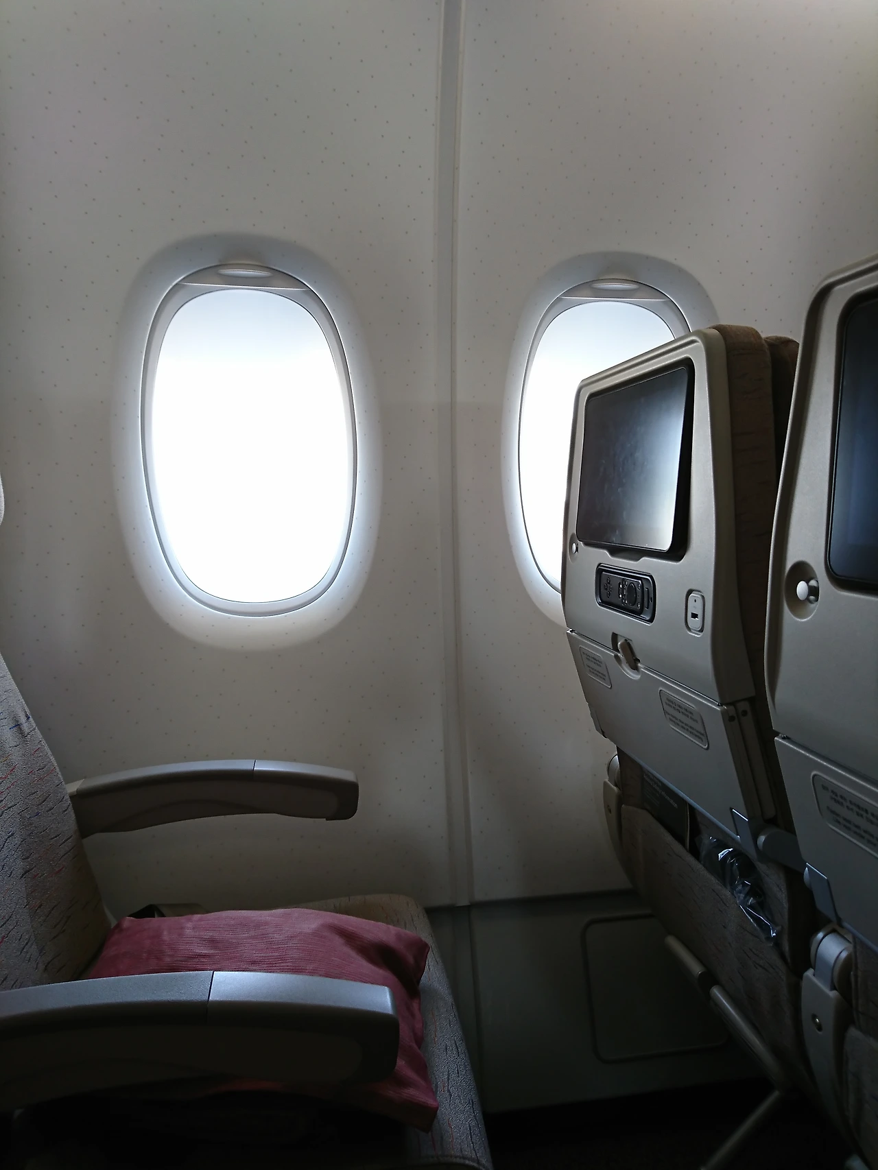잠을 청하려고 했는데, 길어야 1시간 정도면 깼다. 첫 장거리 비행이라 그런 모양이었는데, 거부감이나 어려움 같은 그런 의미의 것은 아니었다. 가끔 미약한 떨림들이 기내에 전해지곤 했지만 전반적인 비행은 아주 편했다. 지상으로부터 10km가 넘는 고도에서, 시속 1,000km가 넘는 속도로 1만 3천 km를 비행하고 있다는 게 그다지 실감이 나지 않을 정도로 말이다. 통로 좌석을 택한 나는 마침 옆자리에 아무도 없어서 공간을 더 넓고 편하게 사용할 수 있었다.