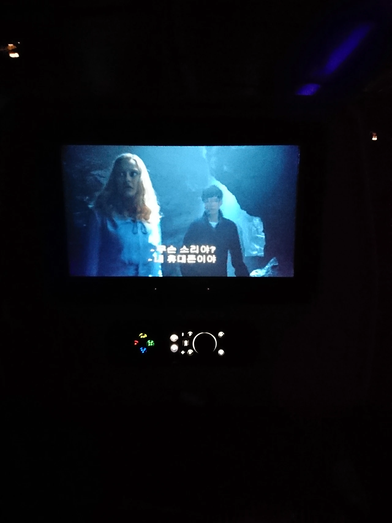 여객기가 이륙한 후, 이동 중에 승무원이 '세관신고서'라는 걸 나눠줬다. 착륙하기 전에만 쓰면 되지만, 받자마자 작성했다. 한글이 적혀 있기는 한데 한글로 적어도 되는 건가 잠시 고민을 했다. 좌석마다 설치된 모니터를 통해 영화 등의 엔터테인먼트를 즐길 수 있었는데, 종류가 많지는 않지만 나름대로 최신 영화들도 구비되어 있었다. (<파도가 지나간 자리>도 있었는데, '중국어' 자막만 지원되었다!) 나는 팀 버튼의 <미스 페레그린과 이상한 아이들의 집>을 봤다. 리더필름의 앞에 기내용으로 영상변환 및 유통을 담당했을 것으로 보이는 업체의 그것이 추가로 들어가 있었고, 영상은 동일하지만 극장용과 화면 비율이 다르다는 언급이 있었다.