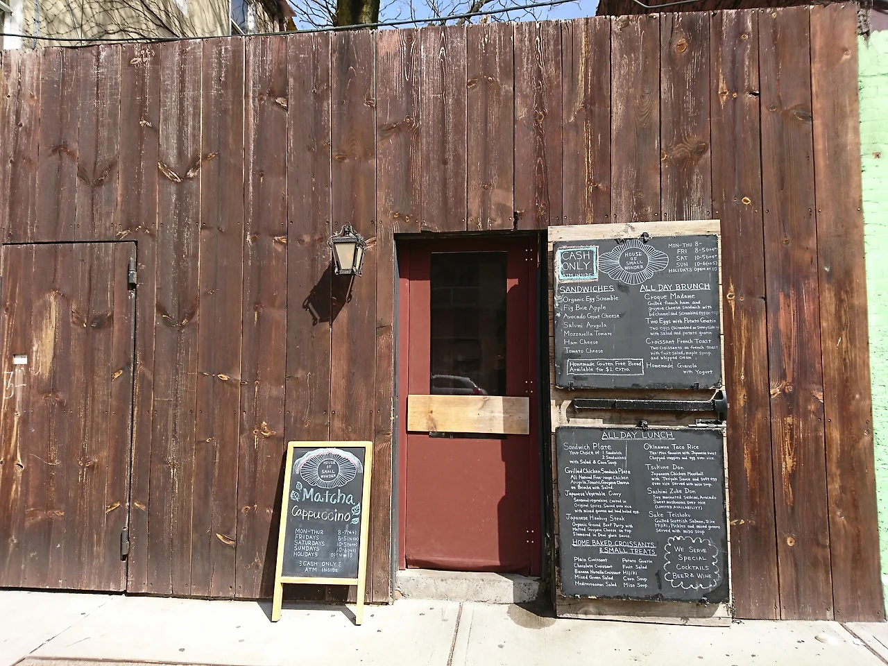 식사를 위해 찾아간 곳은 'House of Small Wonder'라는, 일본식 브런치 정도로 표현할 수 있는 메뉴들을 파는 곳이었다. 내가 주문한 것은 '오키나와 타코 라이스'와 콜드브루 커피. 일본식 요리들 뿐 아니라 샌드위치와 수프, 샐러드 등이 구비돼 있었는데, 입구는 미리 알고 찾아가지 않으면 지나칠 수 있을 만큼 소박하고 튀지 않았다. 혼자 조용히 식사를 즐기러 온 사람들이 나처럼 다수 있었는데, Shelley의 말대로 Williamsburg는 트렌디하고 '힙'한 공간이었고 그중에서도 이곳은 정말로 상호에 걸맞게 작지만 많은 놀라움들이 있는 곳이었다. 가게의 중간에 자리한, 뽑지 않은 큰 나무 한 그루가 그걸 느끼게 해줬다. 자연에 속해 있는 도시랄까, 적당한 소란이 식사를 더 맛있게 했다.