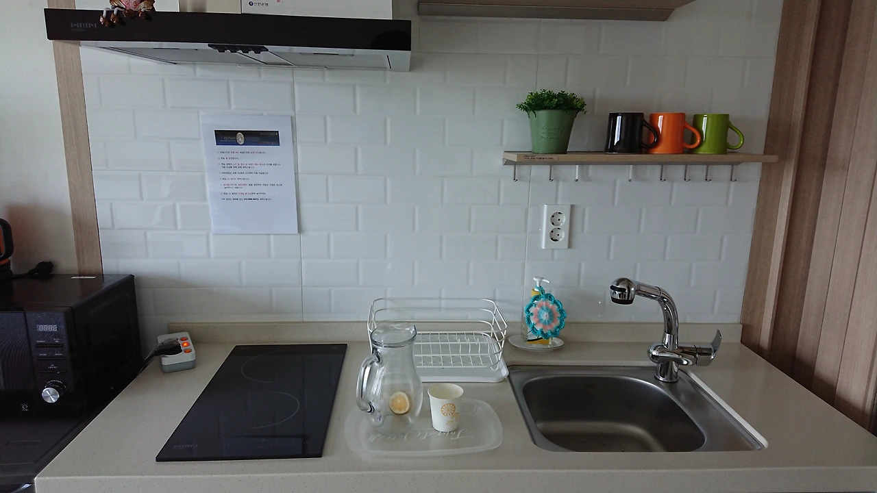 체크인 당일이 되자 먼 길 조심히 오시라며 호스트는 내가 제주행 비행기에 탑승할 무렵 한 번 더 메시지를 했다. 제주공항에 내린 후 점심을 먹는데 메시지가 하나 더 왔다. 휴대전화가 갑자기 고장이 좀 생겨 서비스센터에 다녀와야 한다며, 원래 예정했던 오후 4시가 아니라 언제 도착하든 입실할 수 있도록 열어놓았고 에어컨도 미리 켜두었다는 내용이었다. 출발 전 도착 예정시간을 알려드렸던 덕분인지 내가 입실한지 10분 정도 후에 호스트가 방문을 두드렸다. 결코 과하지 않지만 마음이 편안해지는 친절. 직접 만든 한라봉차라며 얼음물과 함께 드시라고 내게 쟁반을 건넸다. 침구나 수건 같은 비품에 많이 신경쓰고 있다며 수건도 마음껏 쓰고 필요한 게 있으면 언제든 이야기 하라는 말과 함께.