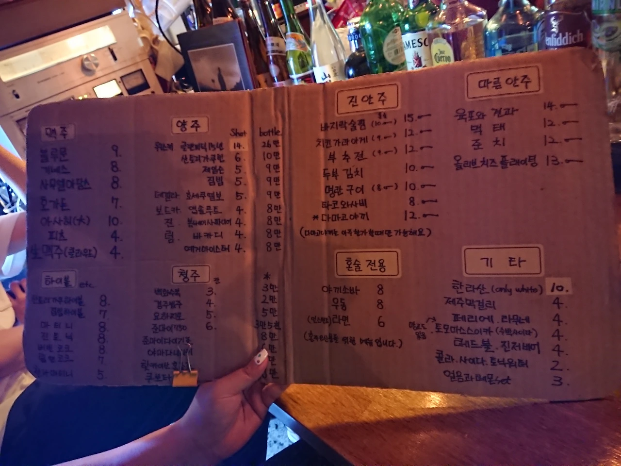 렌트카를 반납한 건 여기를 위해서였던 모양이다. 심야식당 같은 곳. 혼술하러 온 사람들이 각자의 이야길 늘어놓는 곳. 제주도에 또 오면, 나 여기 또 올게요. 나처럼 내일 서울로 돌아가는 사람, 오늘 제주에 온 사람, 여기 사는 사람. 그리고 혼자 운영하는 사장님. 시간 가는 줄 모르고 앉아 수다를 떨고 있다. 그리고 인스타그램에서만 3년을 넘게 알고 지낸 우리는 우연하게도 여기서 처음 만났다. 내가 처음 알았을 때부터, 두 사람은 계속 예쁜 만남을 이어오고 있다. 며칠 전에 추천받았던 데를 찾아왔더니, 이토록 무심하고 사랑스럽고 투박한 공간이 날 기다리고 있었다. 여기 때문에 제주도에 다시 오고 싶어졌어.