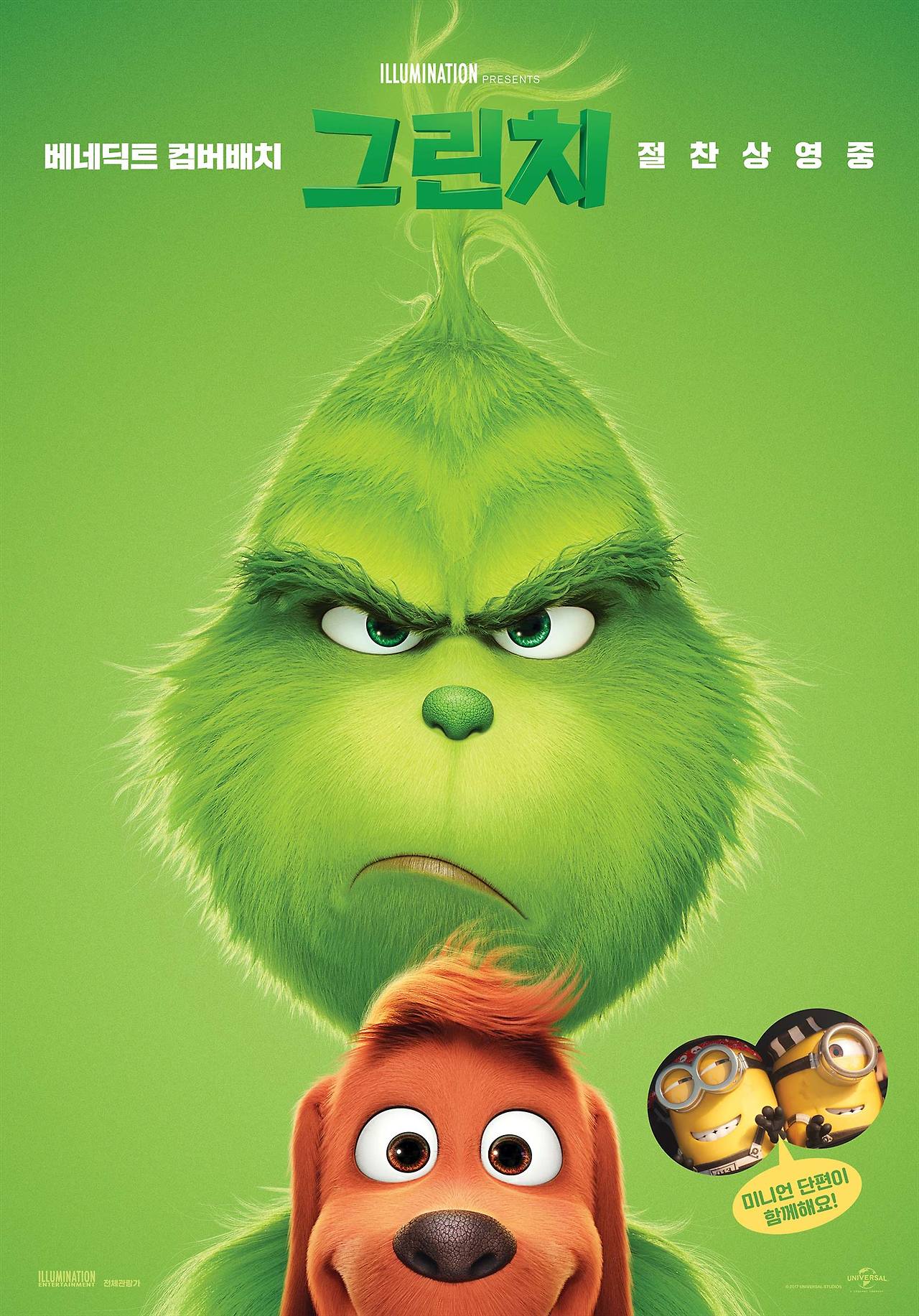 일루미네이션의 신작 <그린치>가 5위로 데뷔했습니다. 확실히 <슈퍼배드><미니언즈>와는 다르게 어딘지 성인보다는 아동용 작품처럼 인지된 듯하고, 실제로 제가 전체 상영관을 다 보진 못했으나 자막 상영관보다는 더빙 상영관이 더 많이 편성된 것 같습니다. 관객수 역시 평일보다는 대부분 주말에 압도적으로 몰렸고요. 순위로는 5위지만 4위와도 차이가 많이 나는 편이고 다른 신작들보다는 성인 관객들에게 그다지 주목받지 못한 결과라 할 수 있겠네요. 30만~40만급의 흥행을 기록할 것으로 보입니다.