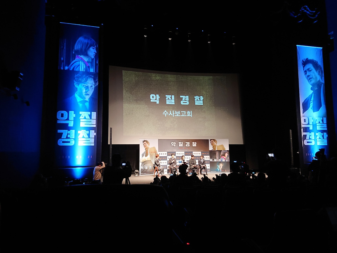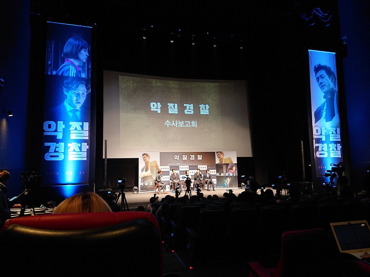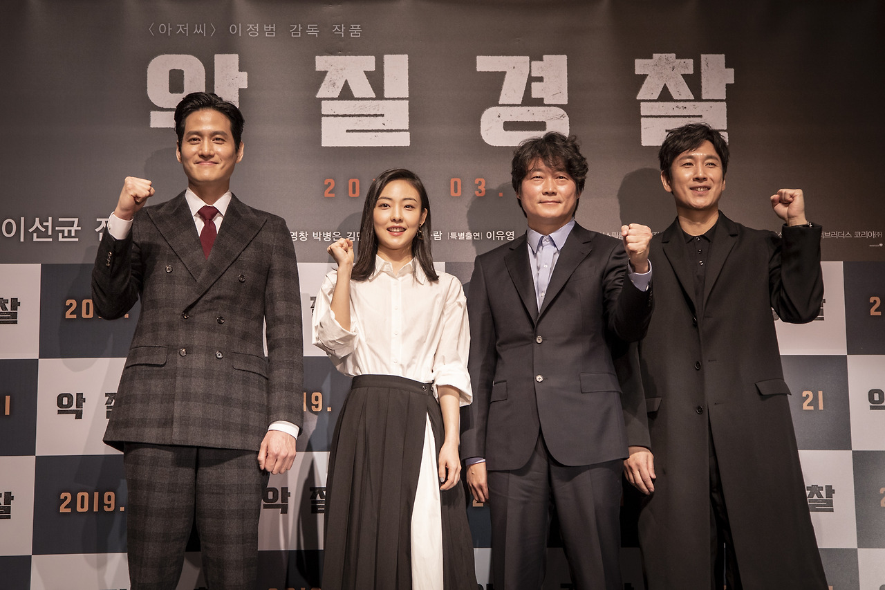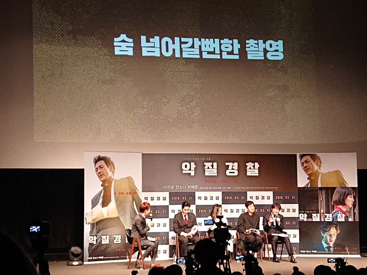 617만 관객(KOBIS 공식 통계 기준)을 동원한 <아저씨>(2010)로 흥행 신드롬을 불러일으킨 이정범 감독의, <우는 남자>(2014) 이후 햇수로 5년 만에 찾아온 신작 <악질경찰>이 마침내 홍보 일정을 시작했다. 이선균, 전소미, 박해준 주연에 송영창, 박병은, 김민재, 남문철, 정가람 등 탄탄한 조연진까지 가세해 2019년 강렬한 범죄 드라마의 탄생을 예고한 <악질경찰>의 제작보고회에 초대받아 CGV 압구정에 다녀왔다. (<악질경찰>은 2017년 3월 크랭크인하여 12월 크랭크업을 했다.)