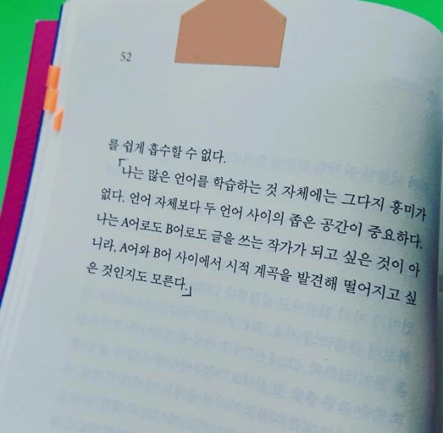 "나는 경계를 넘고 싶은 것이 아니라 경계의 주민이 되고 싶은 것이라고 생각했다. 그래서 경계를 실감할 수 있는 그 망설임의 순간에 언어 이상의 중요한 무언가를 느낀다. 어디에서나 통하는 얕은 영어로 하는 따분한 비즈니스 토크가 세계를 뒤덮으면 참 시시할 것이다. 나는 영어를 험담하고 싶지도 않고 프랑스어를 찬양하는 것도 아니다. 그 장소에서만 느낄 수 있는 기묘한 장소성이, 농밀한 순간이 소중하기 때문에 국경을 넘고 싶다고 느낀다." (55쪽)