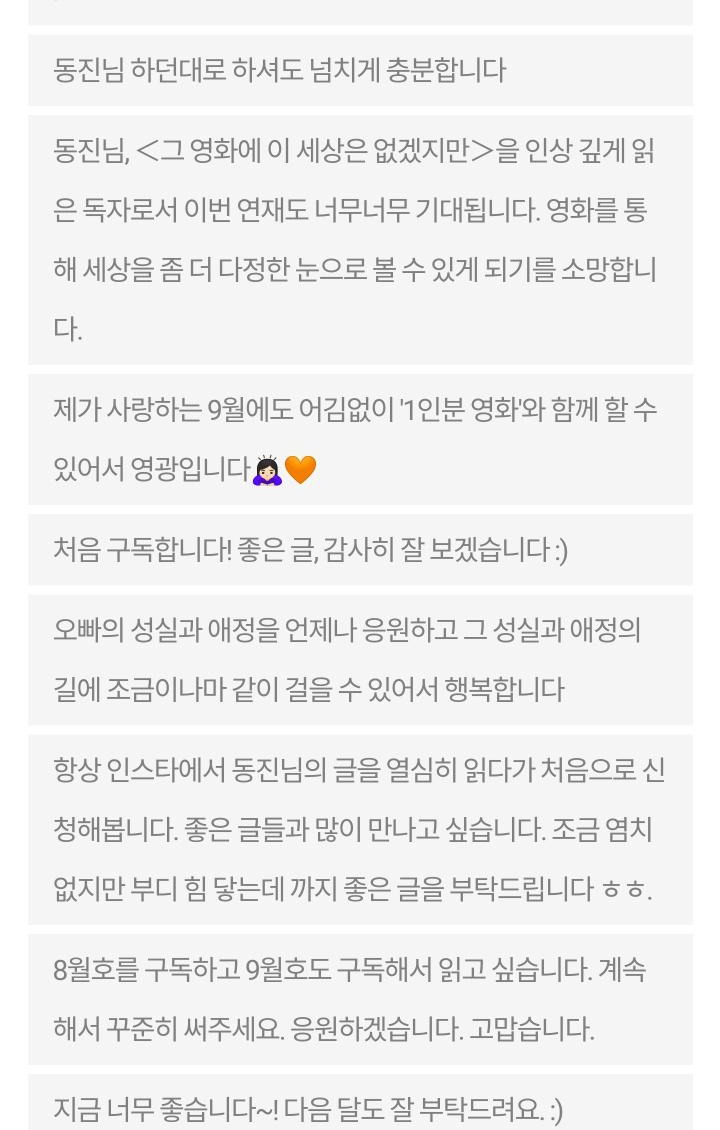 8월에 이어 이메일 연재 [1인분 영화]를 9월호로 계속하기로 했고 오늘은 그 모집 마감일이었다. 사실 8월보다 구독자 수가 소폭 줄었다. 그것에 연연하지는 않기로 했고 이 이야기는 얼마 전의 일기에서도 언급한 바가 있지만, 일단은 연재를 이어가 보기로 했다는 다짐 삼아 오늘의 일기를 쓴다. 지금 같은 시대에 과연 조회 수의 몇 퍼센트나 글을 정독하였을지에 대해 의문을 갖게 될 때가 많다. 그러나 영화모임에서 이언 매큐언의 『속죄』 이야길 하면서도 생각한 것이지만 글쓰기는 결국 독자 이전에 쓰는 사람 자신을 위한 것이다. 몇 명에게 노출되고 그중 몇 명이 실질적인 독자인지를 전혀 의식하지 않을 순 없지만 우선 영화를 보고 책을 읽으며 스스로 생각하고 느낀 것들을 나를 위해 정리한다는 생각으로 계속해서 기록을 남긴다. 결국 기록의 힘이란 그것이 누적된다는 것 자체에 있을 것이기 때문이다. 그러니 동어반복일지라도 계속 남기겠다. 크고 불확실하지만 이 글쓰기의 힘은 무용하지 않을 것이라고. 그리 생각하며 9월 첫날, <벌새>의 상영시간표를 본다. (2019.09.01.)
