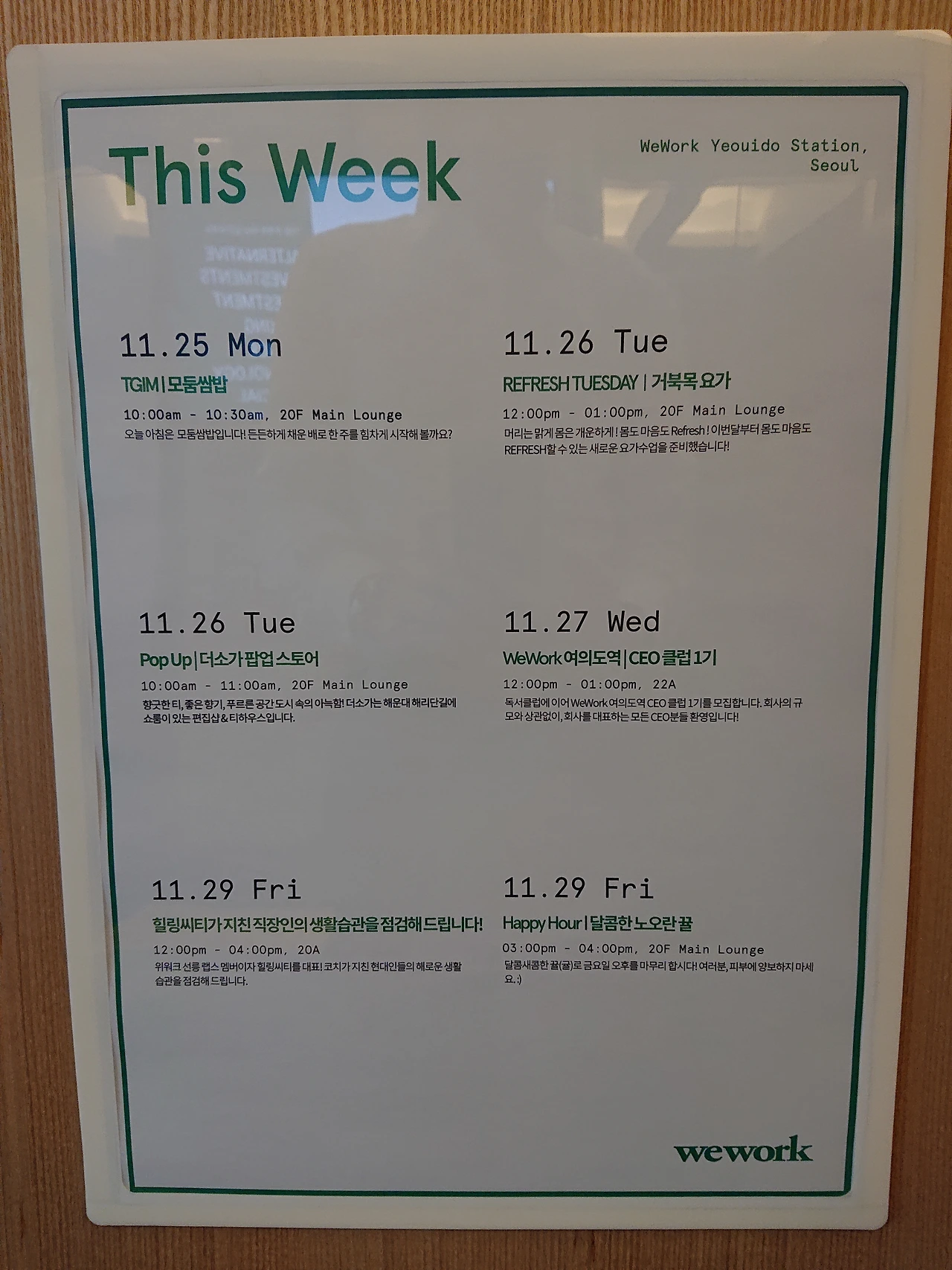위워크에서는 매주 다양한 프로그램이나 이벤트가 열린다.