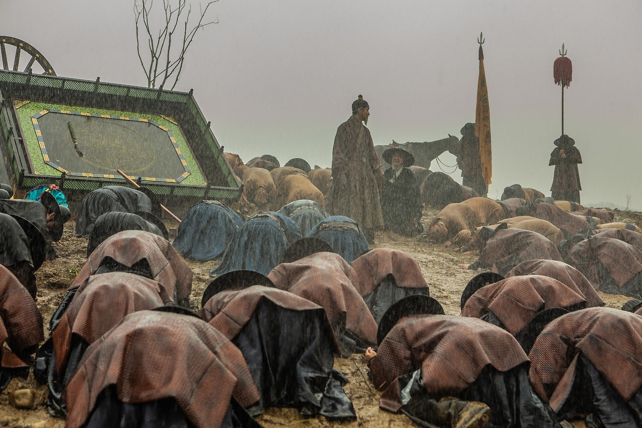 영화의 주된 바탕은 세종이 탄 가마 '안여'의 바퀴가 부러졌던 사건이다. 비 내리는 들판에서 흙탕물을 망연하게 뒤집어쓴 세종과 가신들의 표정으로 문을 연 <천문: 하늘에 묻는다>는 안여 사건 며칠 전으로 돌아가 사건의 배경을 다뤄내는 동시에 세종 집권 초기, 장영실이 세종의 눈에 들어 여러 연구 개발과 발명을 맡을 수 있게 된 계기를 조명한다. 이렇게 크게는 세 개의 시간대를 오가며 단조로울 수 있는 사료의 나열 방식을 피하고, 동시에 앞서 언급한 '세종과 장영실의 관계'를 짚어내는 데 중요한 정보들을 서사 진행에 효과적인 순으로 재배치하는 노력이 <천문: 하늘에 묻는다>의 각본에 묻어난다. 그리고, 거기에 (이미 <뿌리깊은 나무>(2011)에서 '세종'을 연기한)한석규와, <쉬리>(1999)로 한석규와 함께 연기했던 최민식, 그리고 <8월의 크리스마스>(1998)로 한석규의 얼굴을 섬세하게 살린 허진호 감독이 만났다. (허진호 감독이 전작으로 <덕혜옹주>(2016)를 연출한 건 마치 <천문: 하늘에 묻는다>에 앞서 시대극의 감각을 연마하기 위한 중간 단계였던 것처럼 다가오기도 한다.)