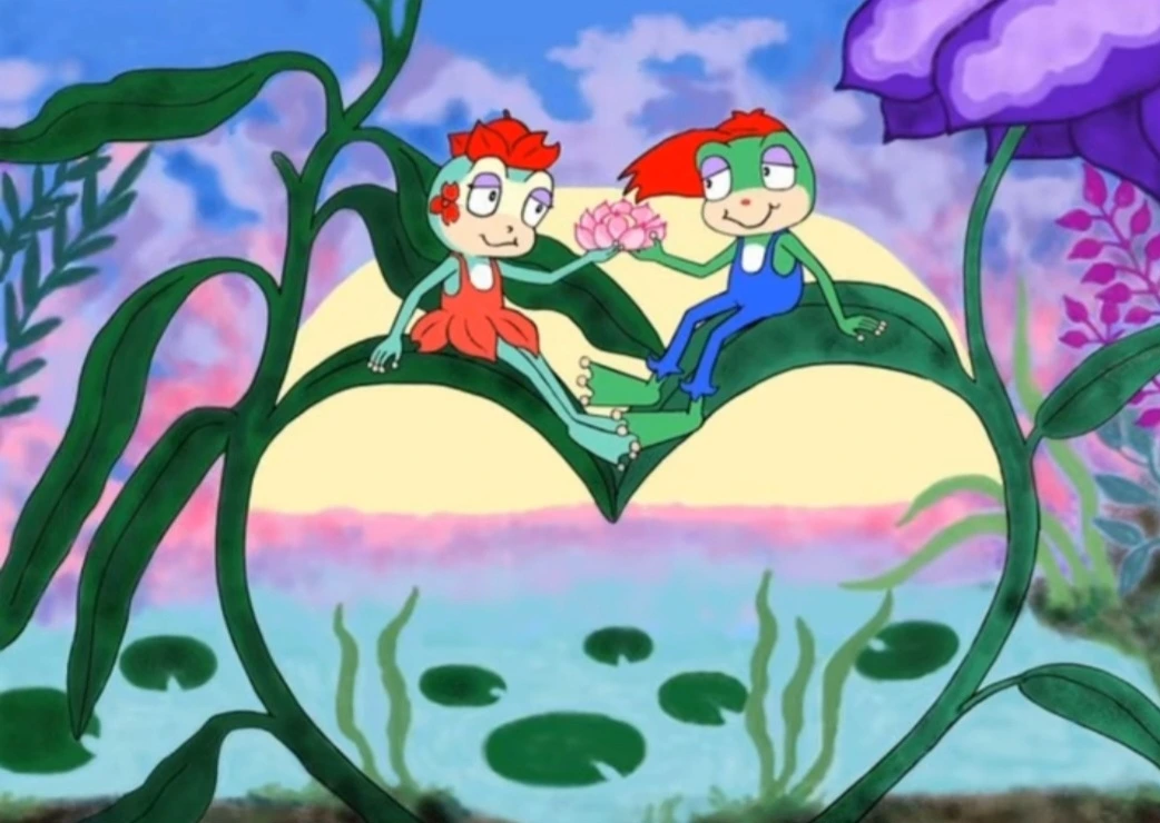 개구리들이 연잎 위에 앉아 노래를 부르고,